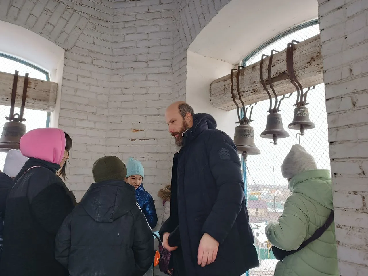 Дети и родители задавали вопросы, ставили свечи, набирали Святую воду. Нам разрешили подняться на #колокольню. Мы послушали настоящего #звонаря, отца Павла, и разрешили позвонить в колокола. Потом мы прошли в здание #Воскреснойшколы, интересно побеседовали и нас напоили чаем со сладостями.