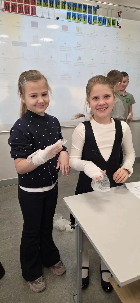 На занятии ребята узнали, в каких ситуациях нужно вызывать скорую помощь, отработали алгоритм действий при небольших травмах (царапины, ушибы), потренировались накладывать простейшие повязки и разобрали, как правильно позвать на помощь взрослого.