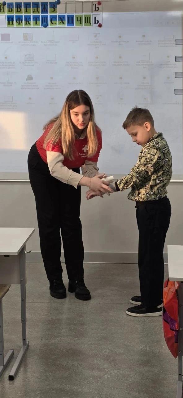 В рамках проекта «Мой папа, моя мама даёт урок» к ребятам из 2 «В» класса пришла мама ученицы Громовой Софии — Ксения Александровна Бочарова. Вместе со студенткой Медицинского института НИУ «БелГУ», волонтёром-медиком Валерией Серхан они провели для второклассников занятие по оказанию первой помощи. 🧑⚕️