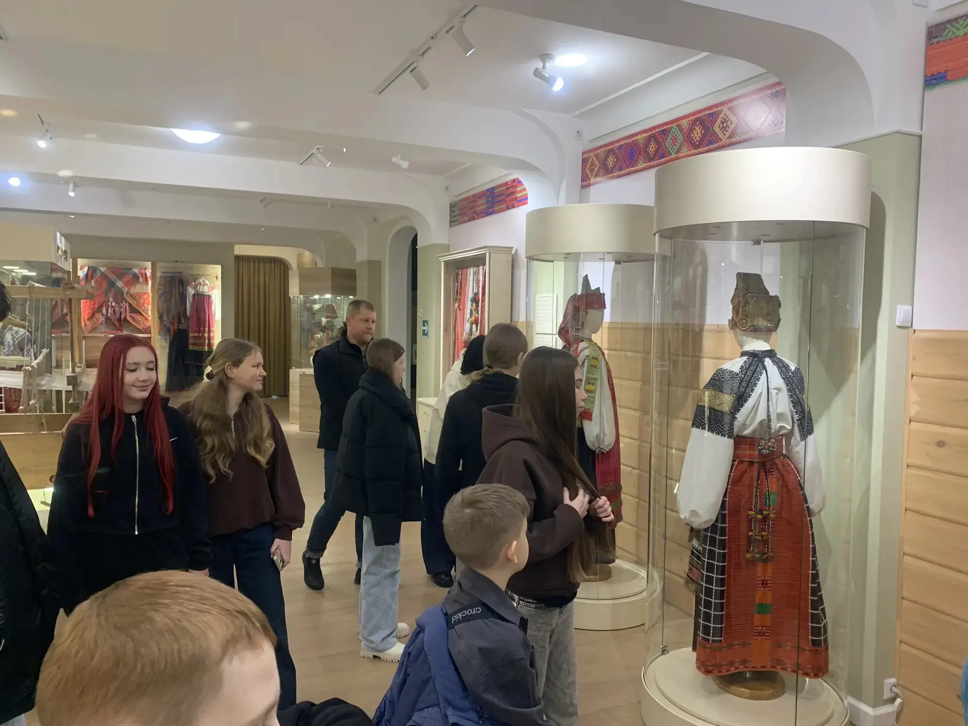 Экскурсовод 1-й категории Елена Алексеевна Шокова провела для ребят экскурсию «Мир народной культуры», в ходе которой рассказала о промыслах и ремёслах Белгородского края. Ребята увидели комплексы праздничной крестьянской одежды, ткацкий стан. А экспозиция «Уездный город» позволила на мгновение перенестись в быт белгородского купечества и дворянства.