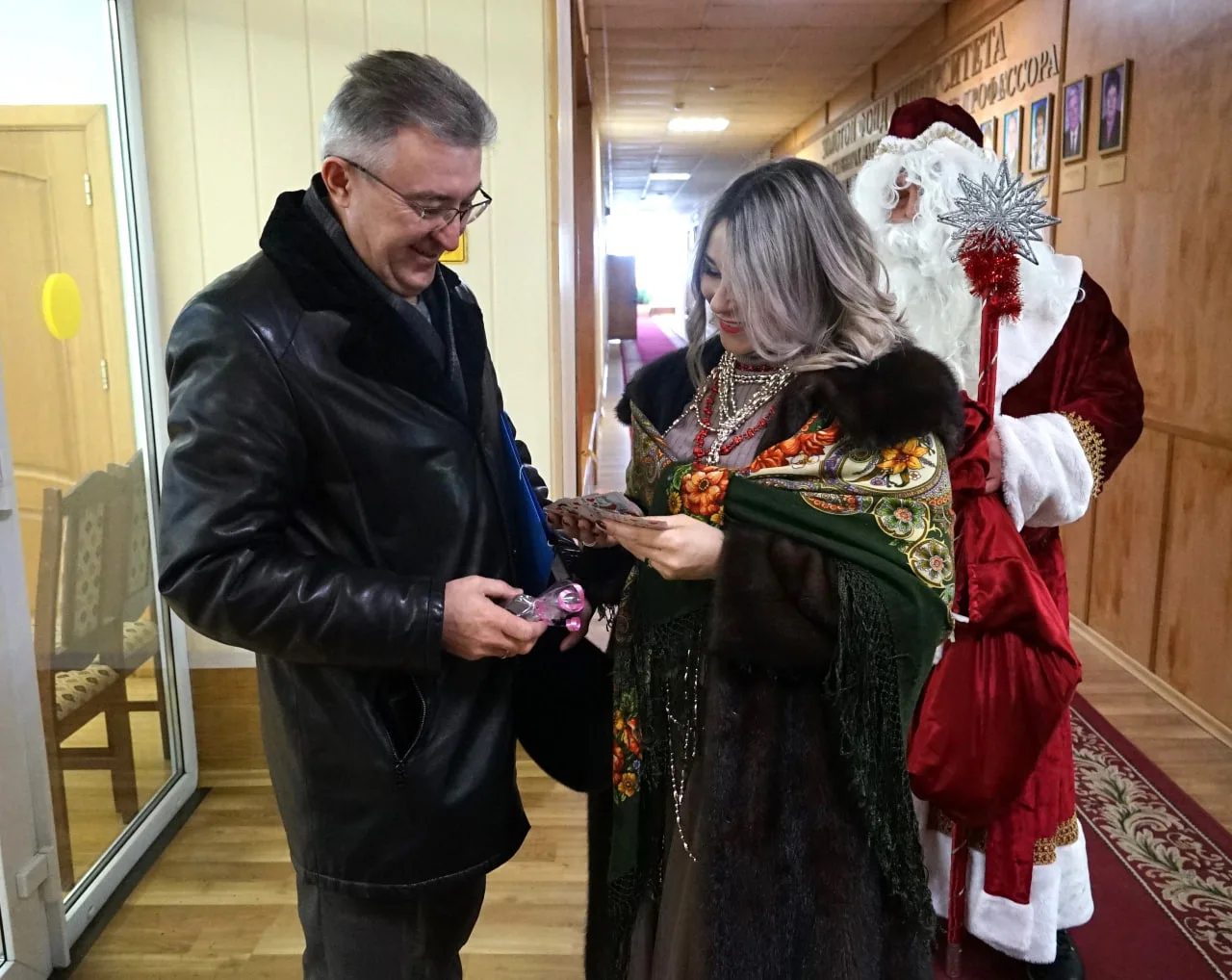 Дед Мороз со Снегурочкой посетили факультеты и администрацию университета, подарили праздничные подарки, провели весёлые гадания на "картах", а также провели обряд засевания пшеницей, соей и ячменем, который, по поверьям, призван обеспечить плодородие и благополучие в наступившем году.