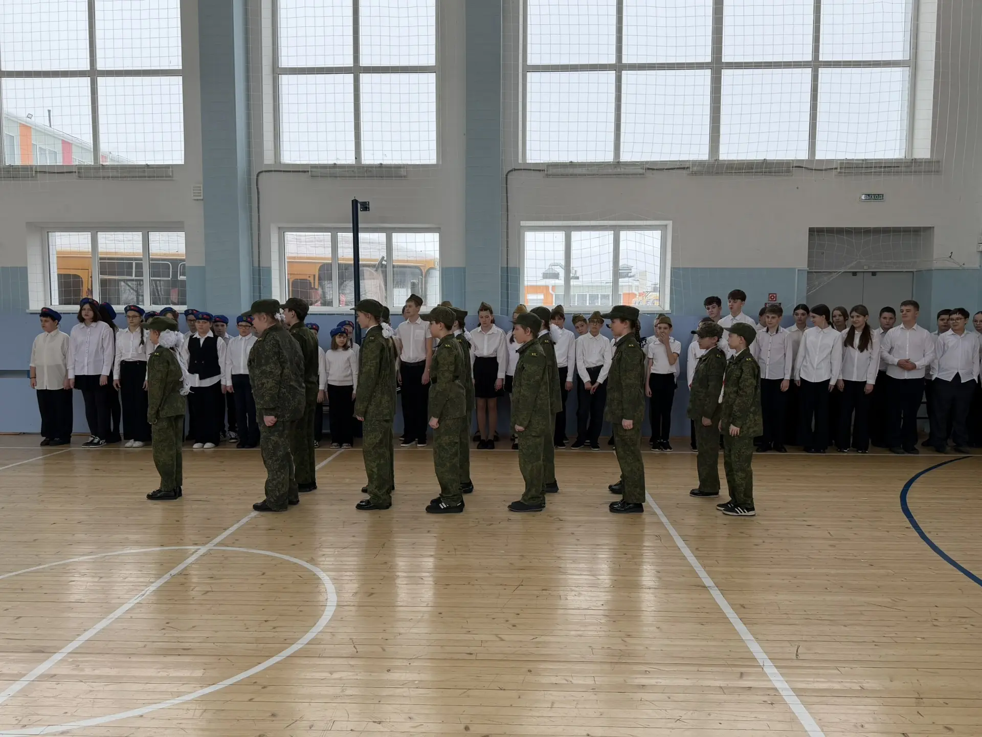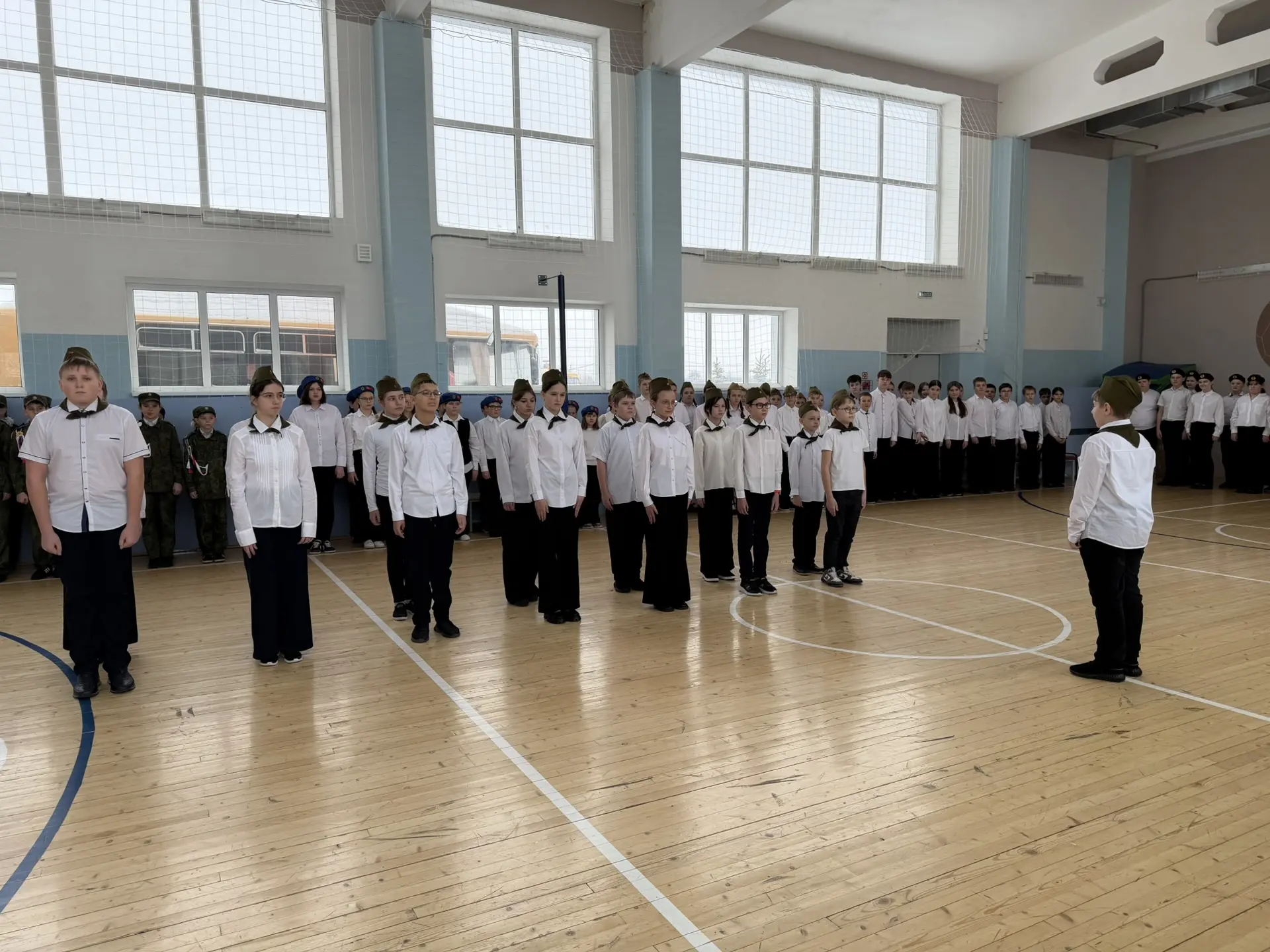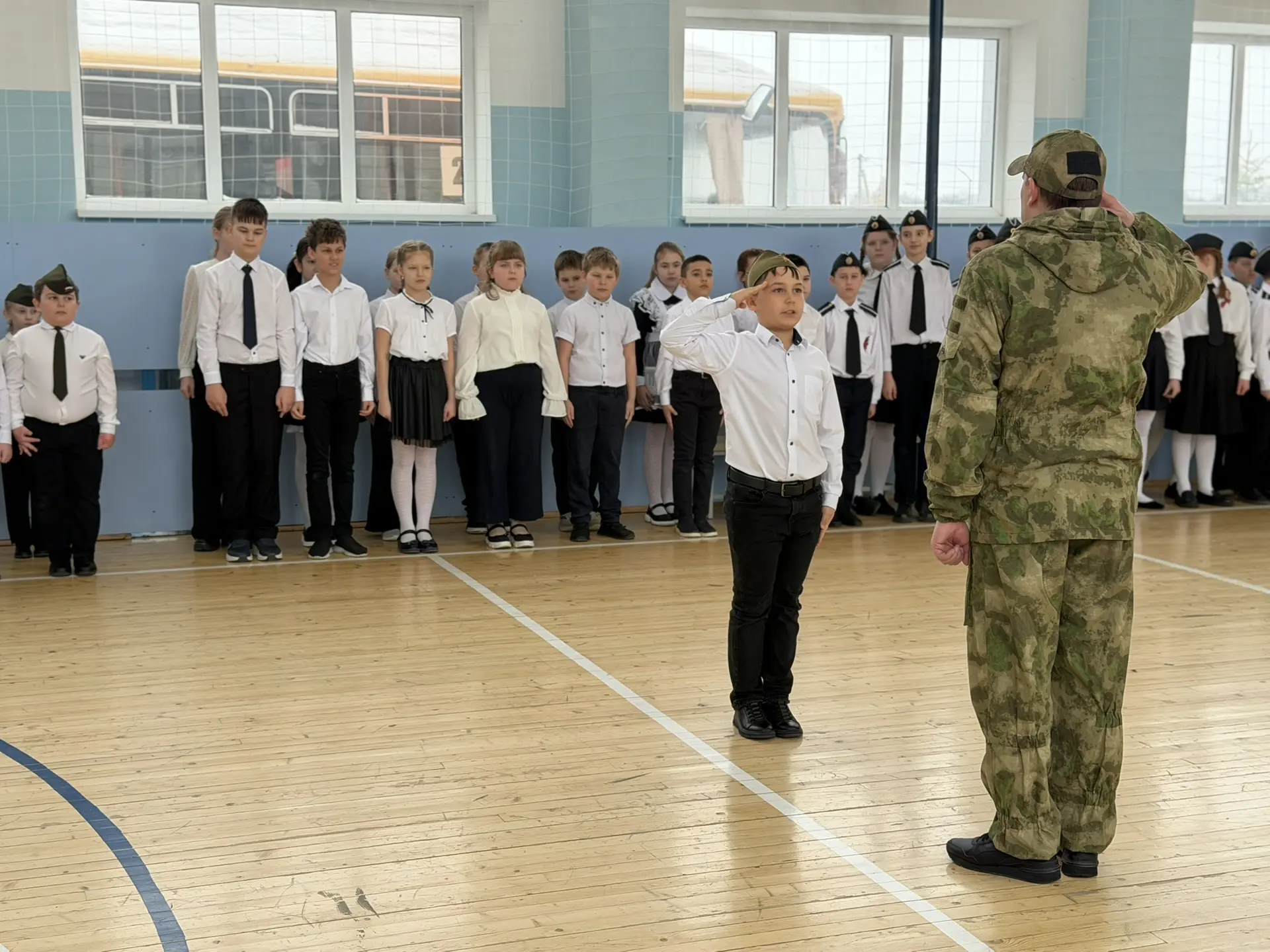 В нашей школе произошло по-настоящему важное событие — прошел ежегодный смотр строя и песни ко Дню Защитника Отечества. Классные коллективы со 2-го по 8-й класс продемонстрировали свою выучку, дисциплину и умение работать в команде.