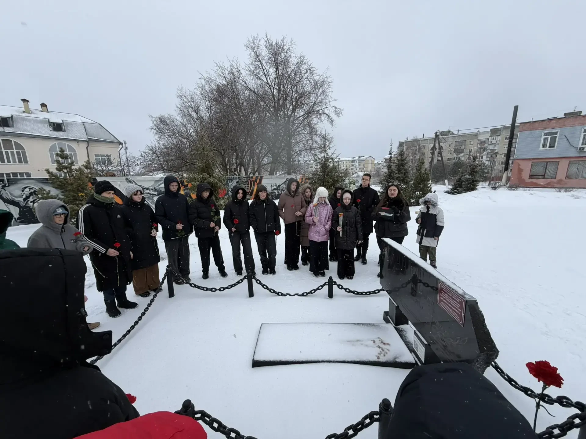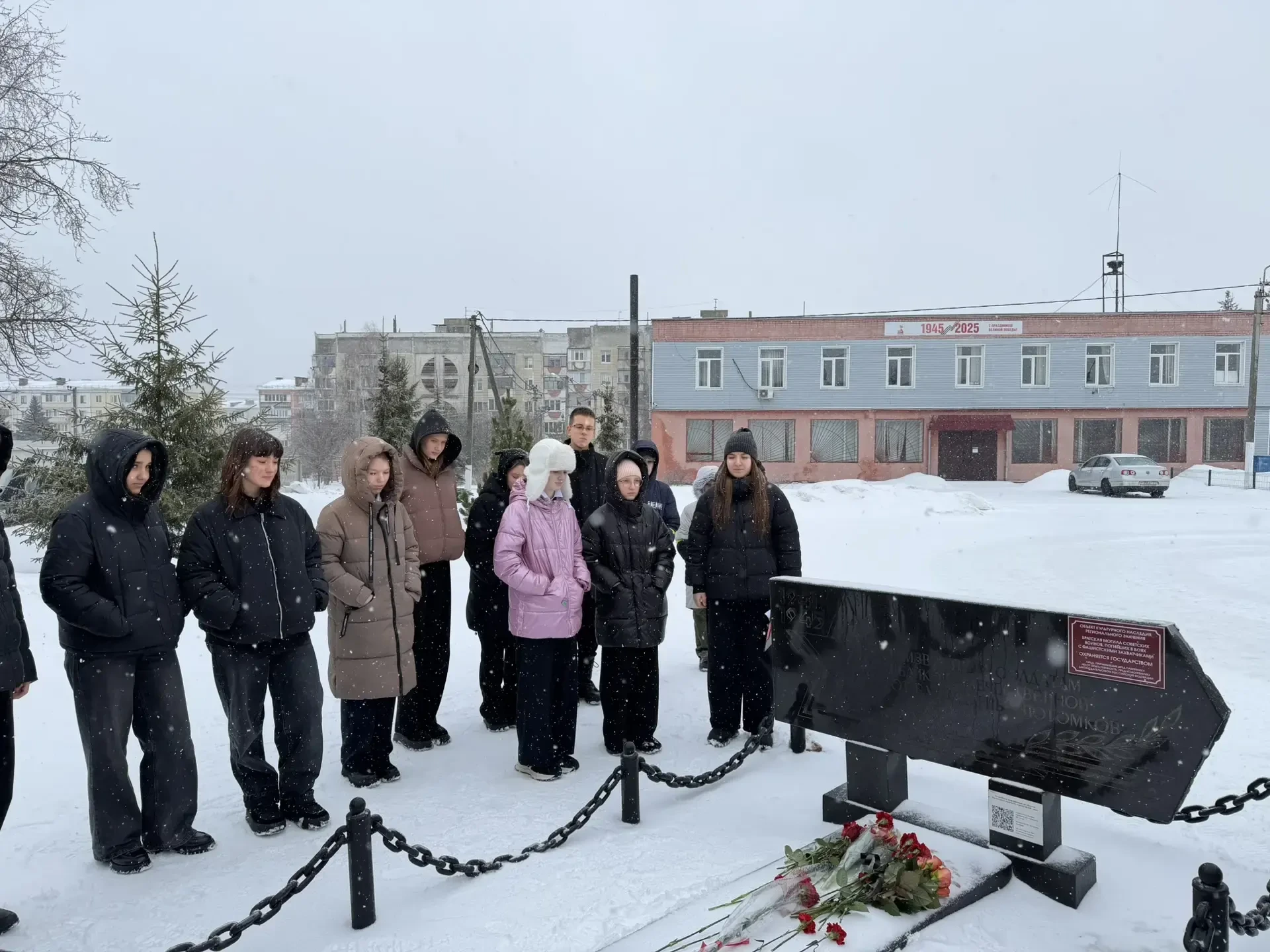 В преддверии Дня защитника Отечества обучающиеся нашей школы приняли участие в памятной акции. Ребята посетили братскую могилу 12 советских воинов, павших в боях с фашистскими захватчиками. Минутой молчания и цветами школьники почтили память героев, отдавших свои жизни за наше мирное небо в годы Великой Отечественной войны.