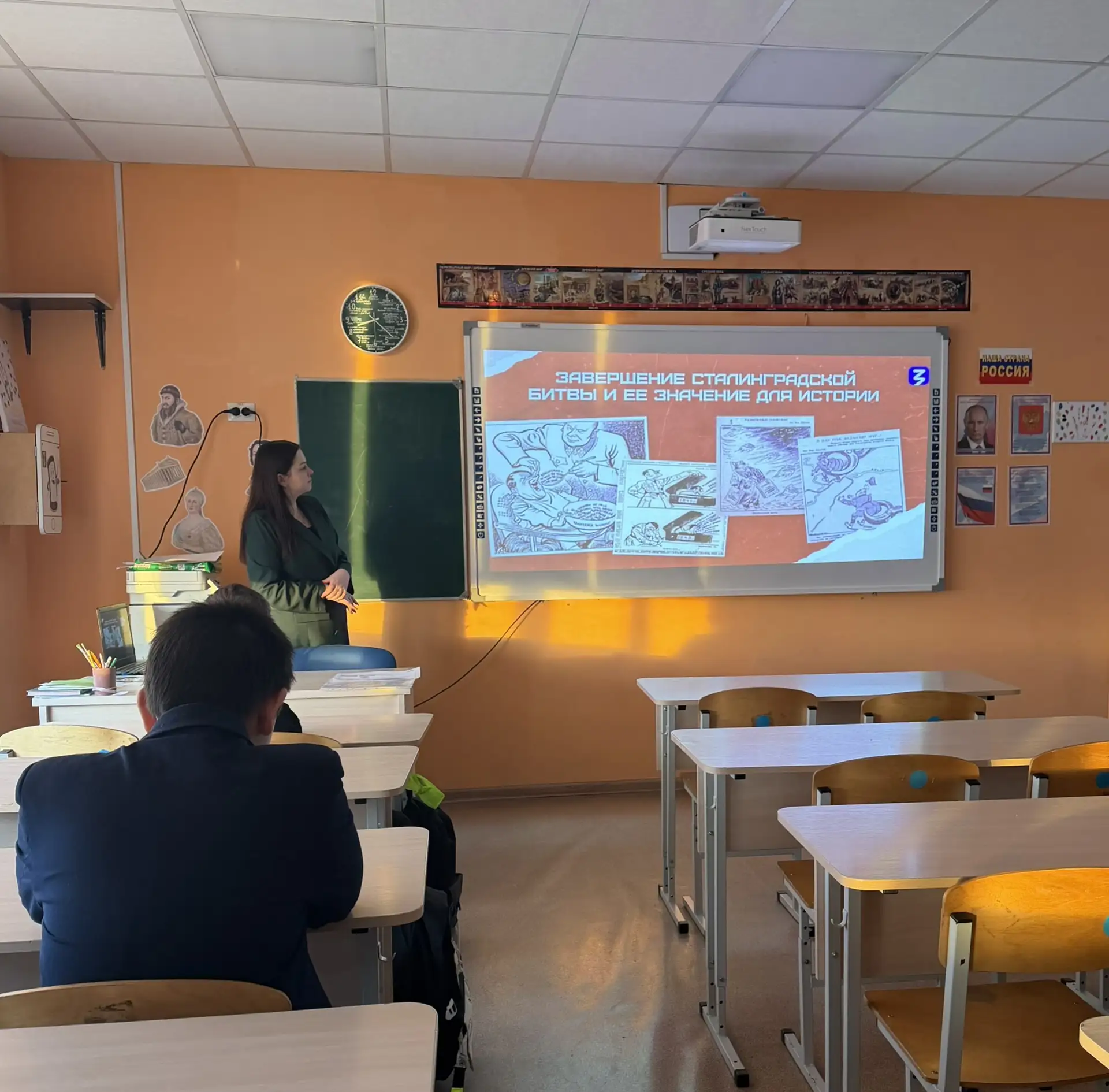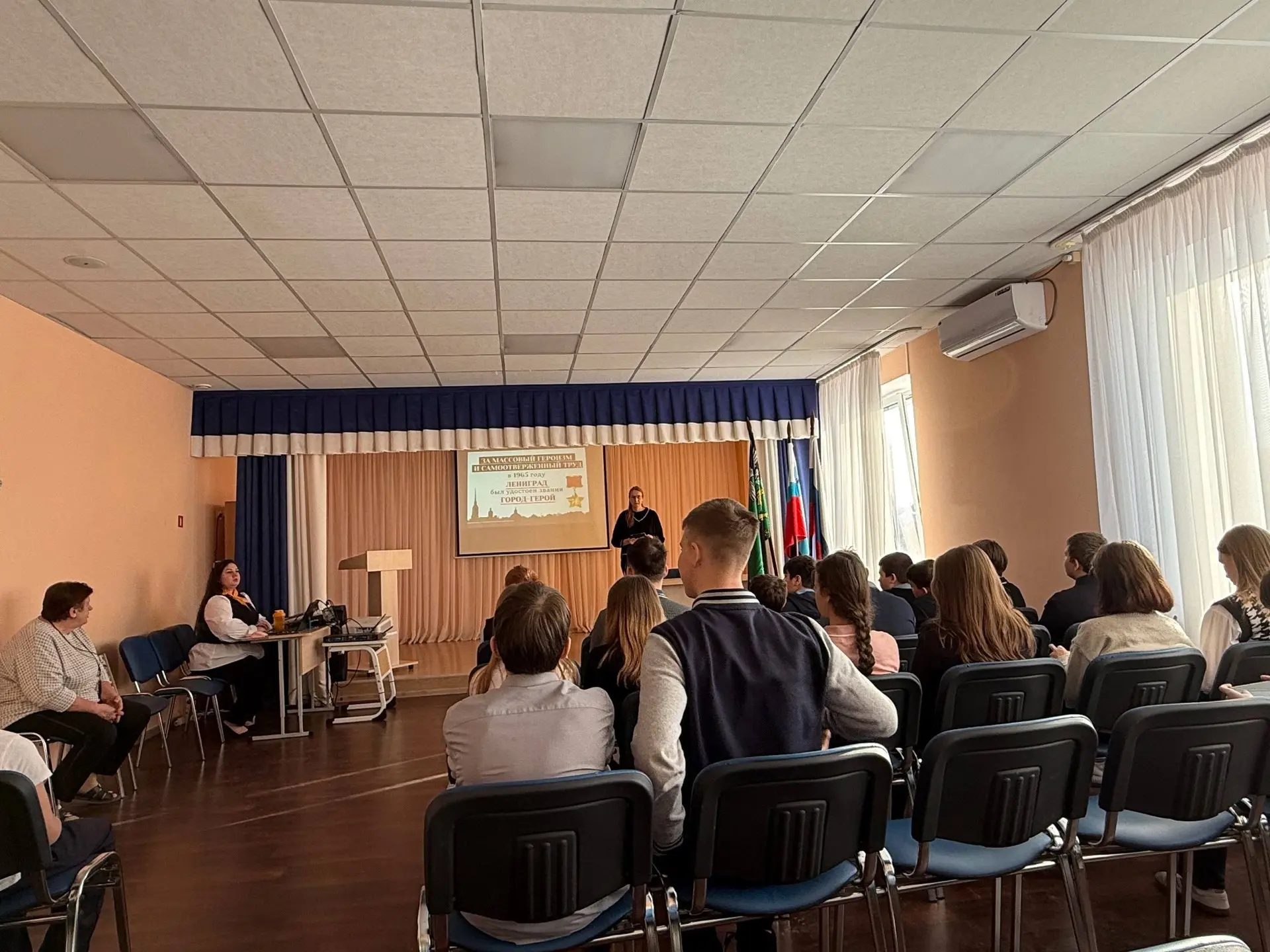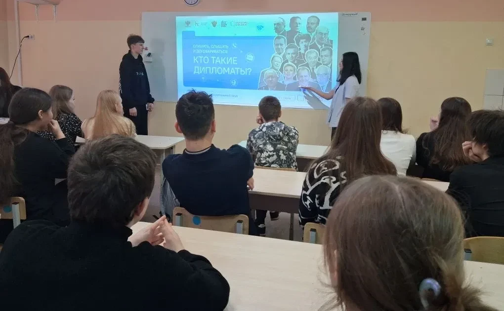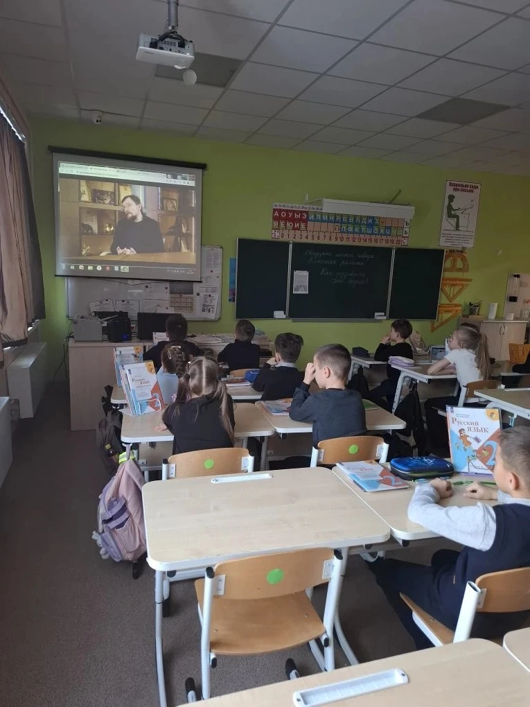 После церемонии для всех классов состоялось внеурочное занятие из цикла «Разговоры о важном». Тема встречи, приуроченная ко Дню защитника Отечества, — «Герой из соседнего двора». Этот урок стал особенным, ведь он был посвящен мужеству, отваге и доблести наших земляков.