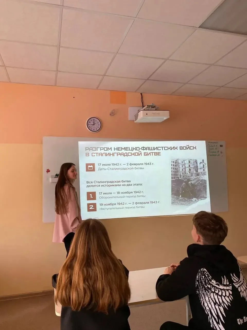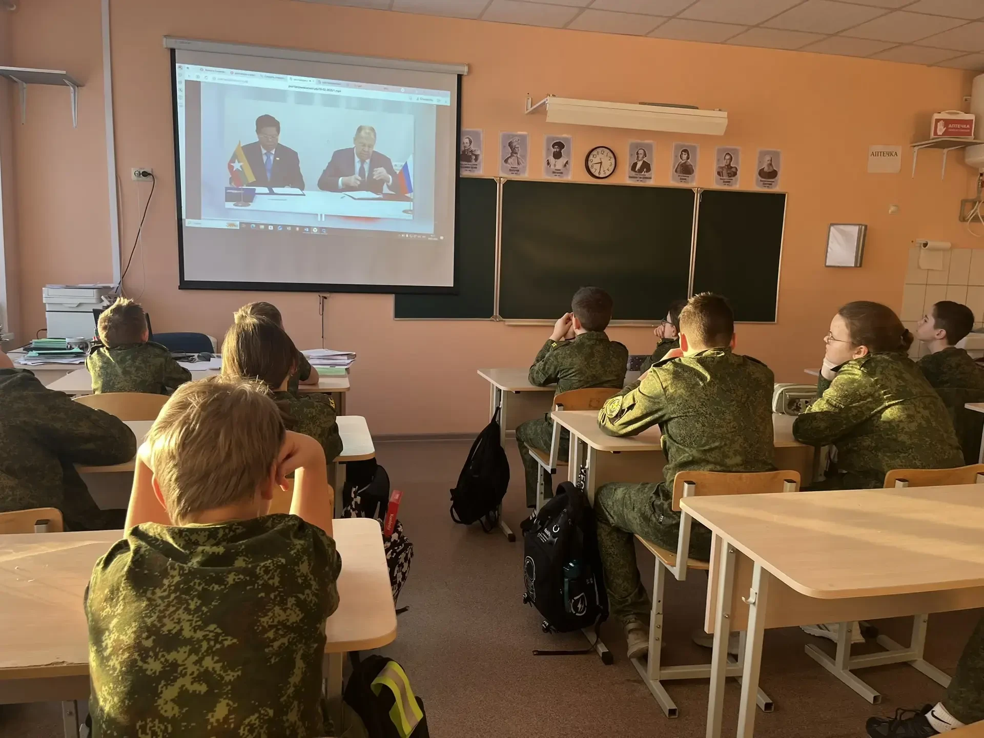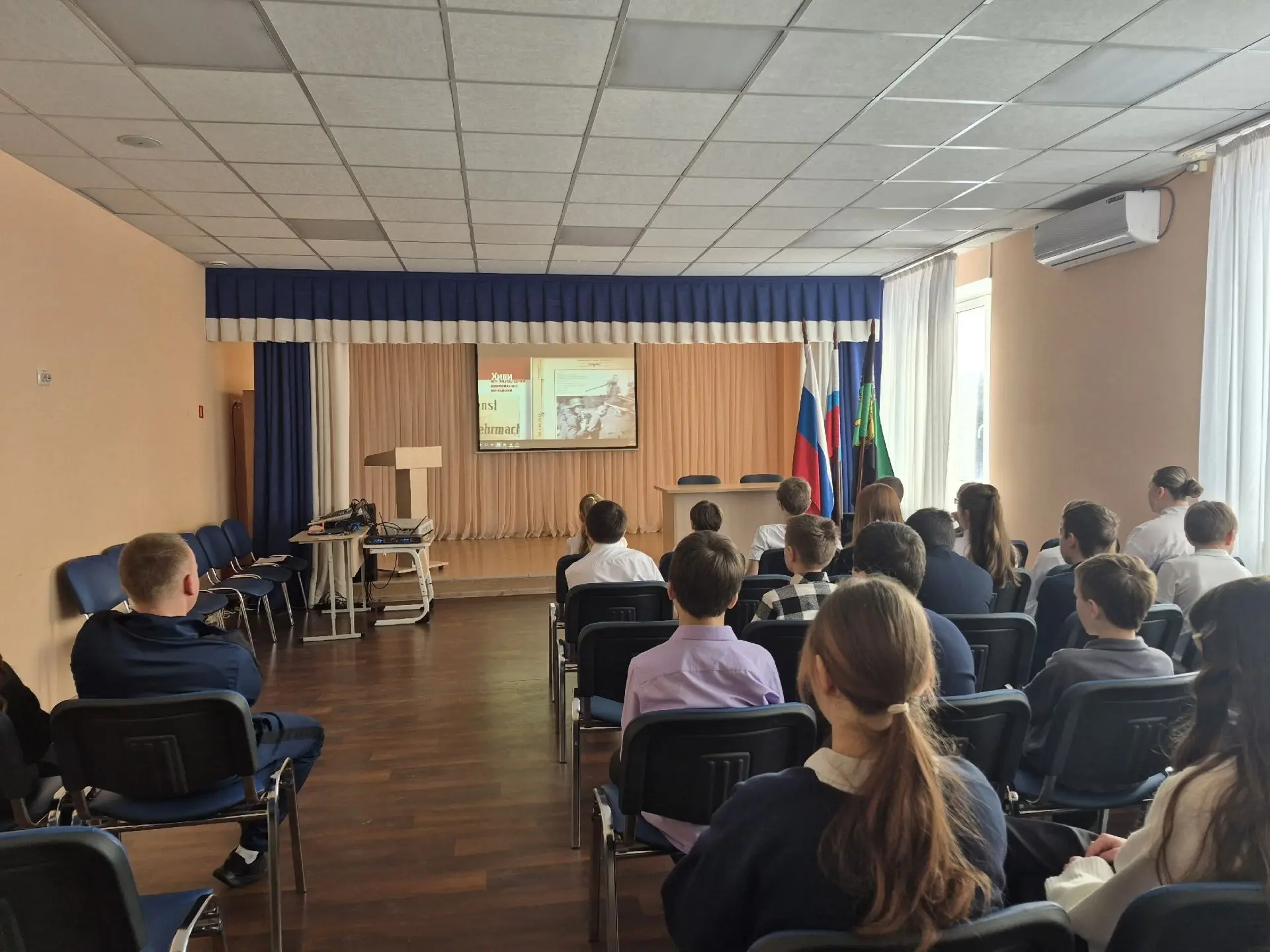 После церемонии для всех классов состоялось внеурочное занятие из цикла «Разговоры о важном». Тема встречи, приуроченная ко Дню защитника Отечества, — «Герой из соседнего двора». Этот урок стал особенным, ведь он был посвящен мужеству, отваге и доблести наших земляков.