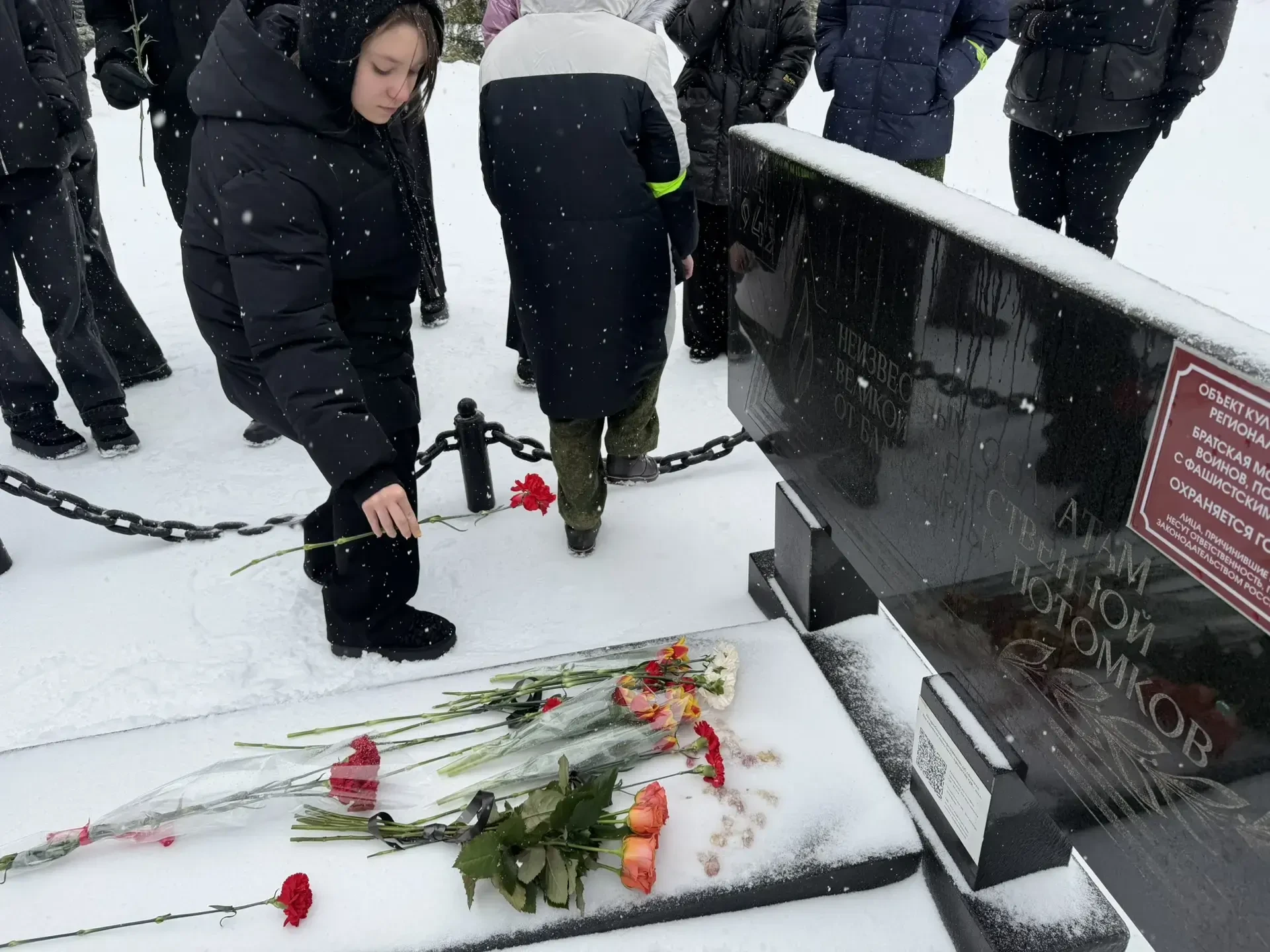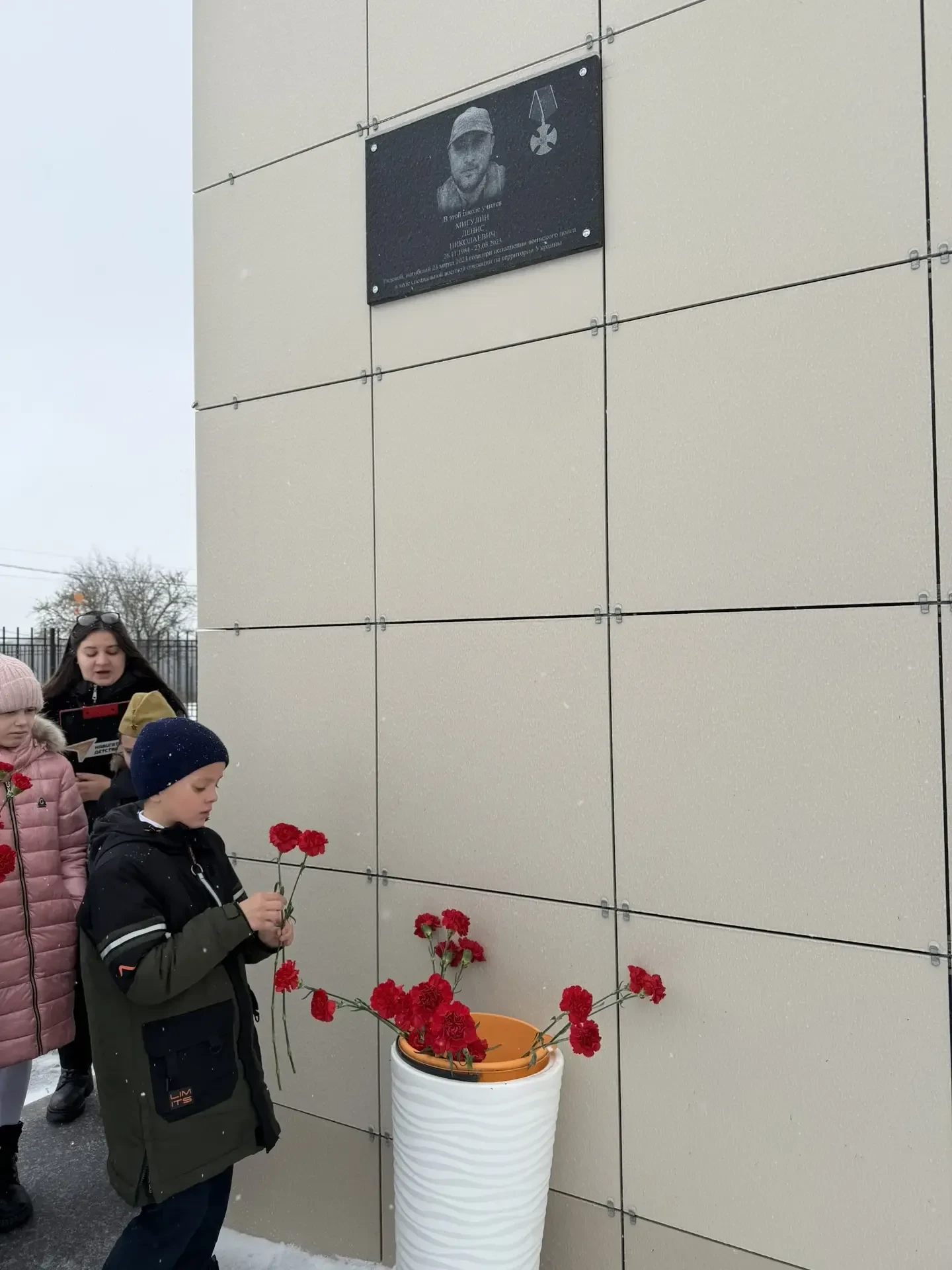 Но нить памяти не прерывается. Сегодня мы также вспоминаем наших современников. Цветы легли к мемориальной доске памяти Мигулина Д.Н., выпускника нашей школы, героически погибшего при исполнении воинского долга в ходе специальной военной операции.