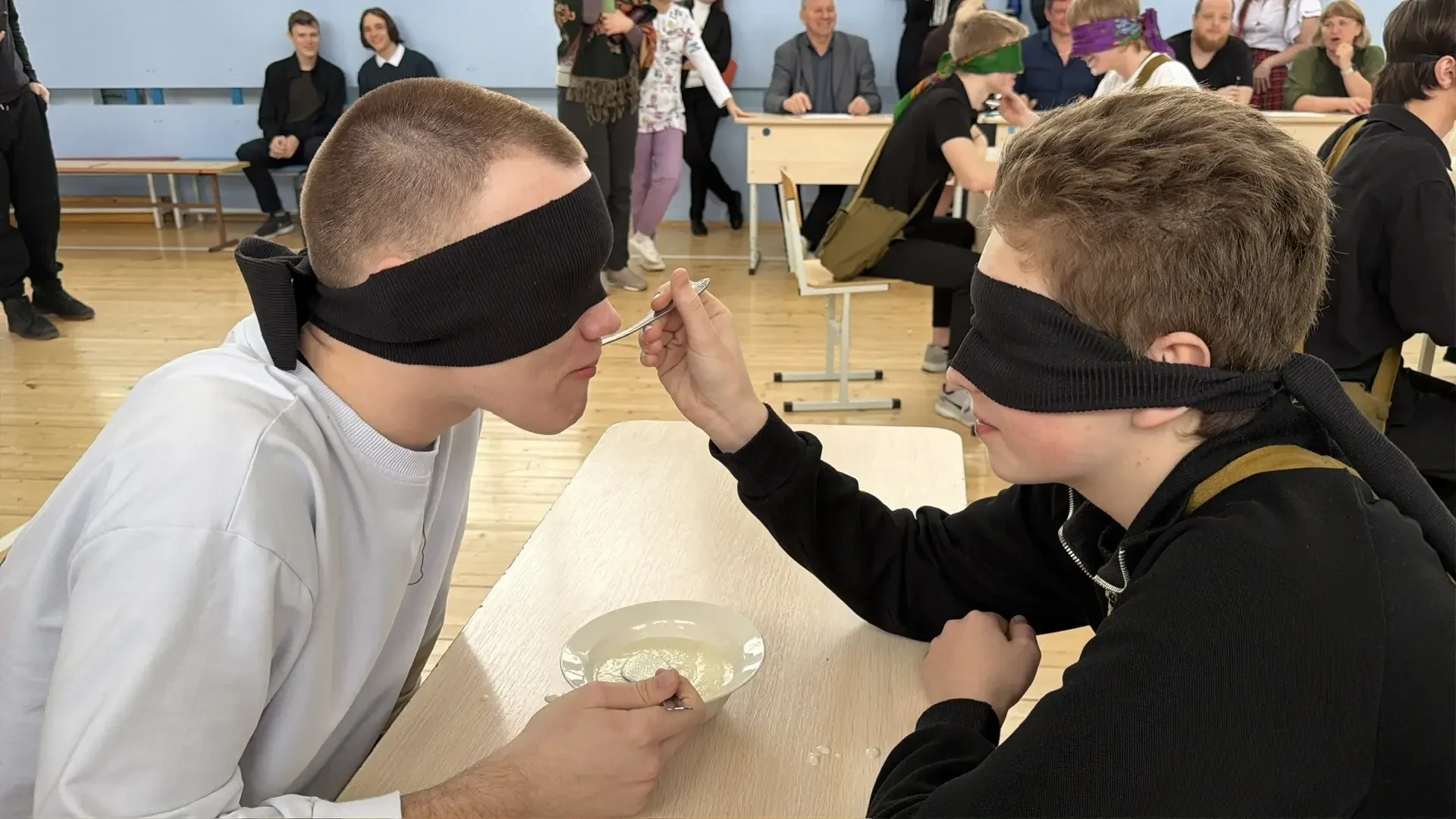 🥣 А финальное испытание — поедание каши с закрытыми глазами — рассмешило даже самых серьезных болельщиков! Ведь тут главное — не скорость, а умение попасть ложкой в рот, а не в ухо. 😂Болельщики поддерживали свои команды так громко, что, кажется, дрожали стены!