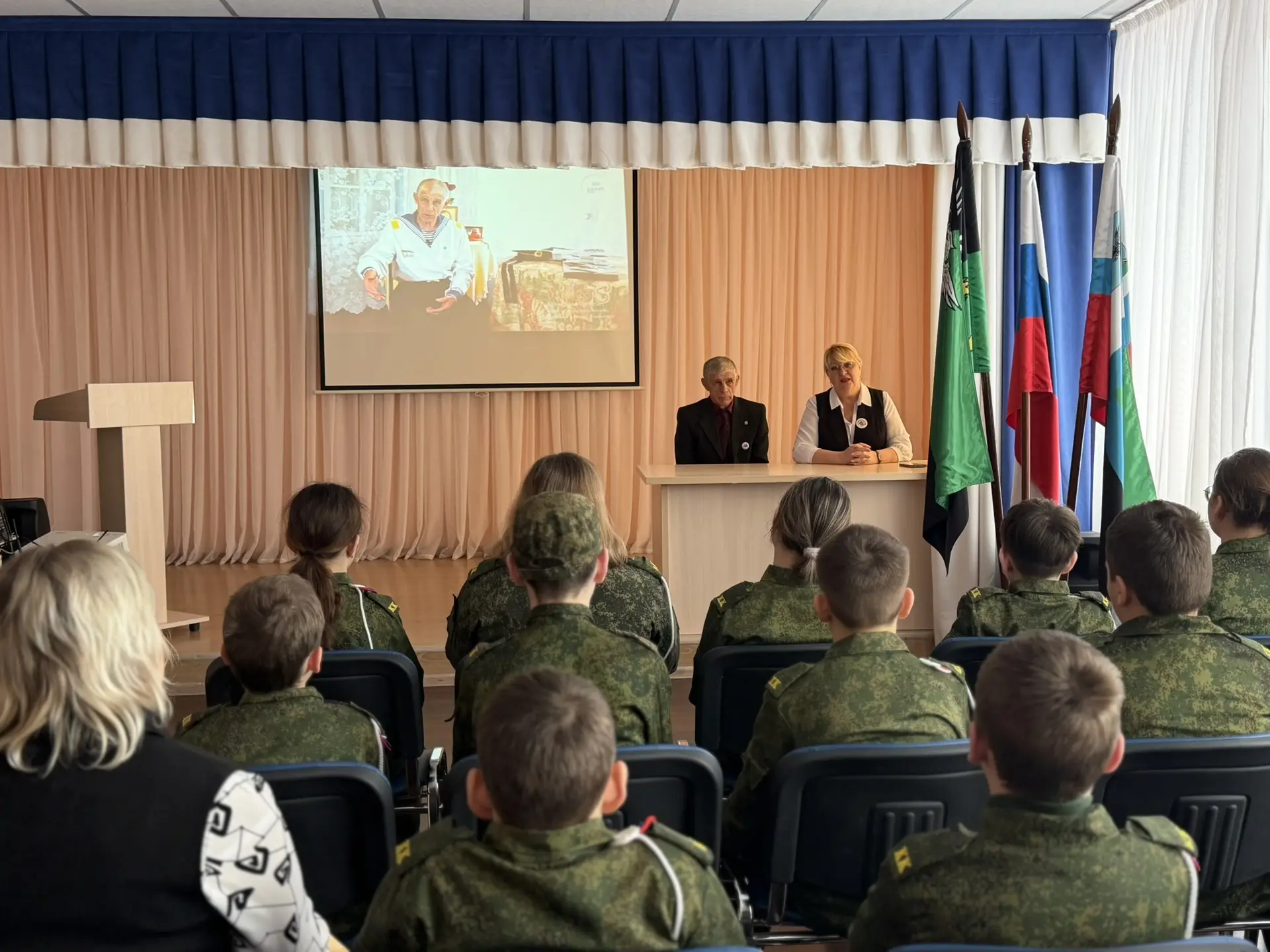 А в стенах нашей школы состоялась важная встреча с ветераном боевых действий, Дятловым Николаем Ивановичем. Он поделился с кадетами воспоминаниями и рассказами о службе. Ребята посмотрели фильм о службе Николая Ивановича на атомной подводной лодке «К-3 Ленинский комсомол».