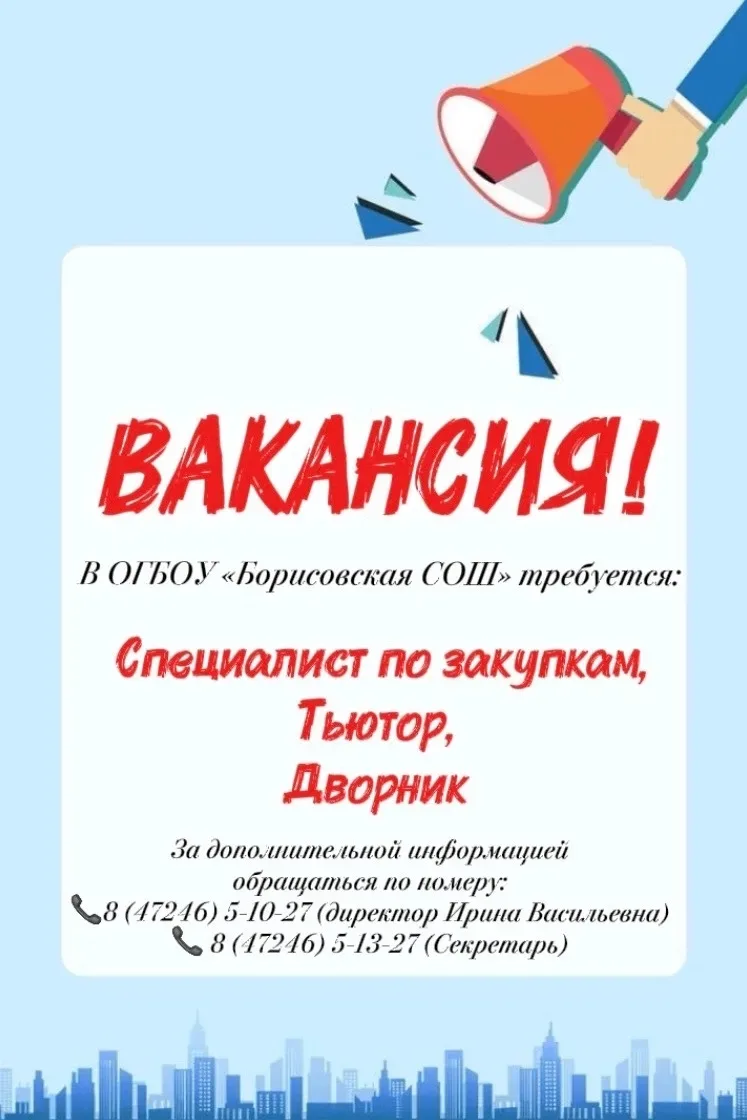 ➡В ОГБОУ «Борисовская СОШ» требуется: