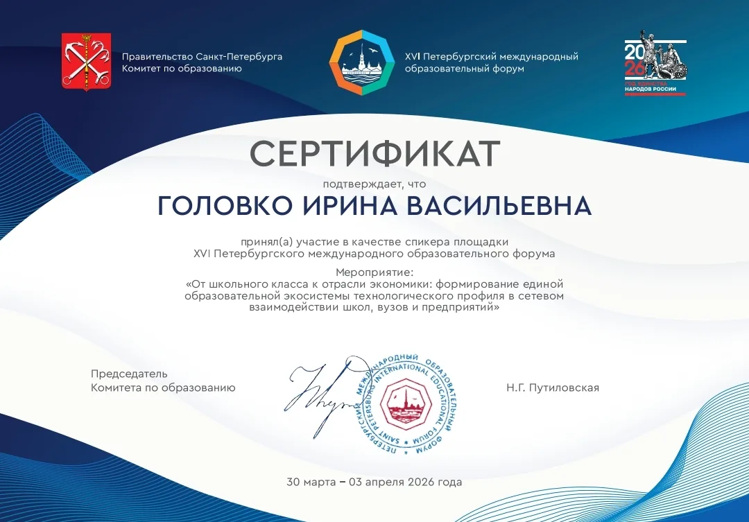 🎙️ Сегодня состоялось значимое событие: Ирина Васильевна Головко выступила в качестве спикера на площадке XVI Петербургского международного образовательного форума!