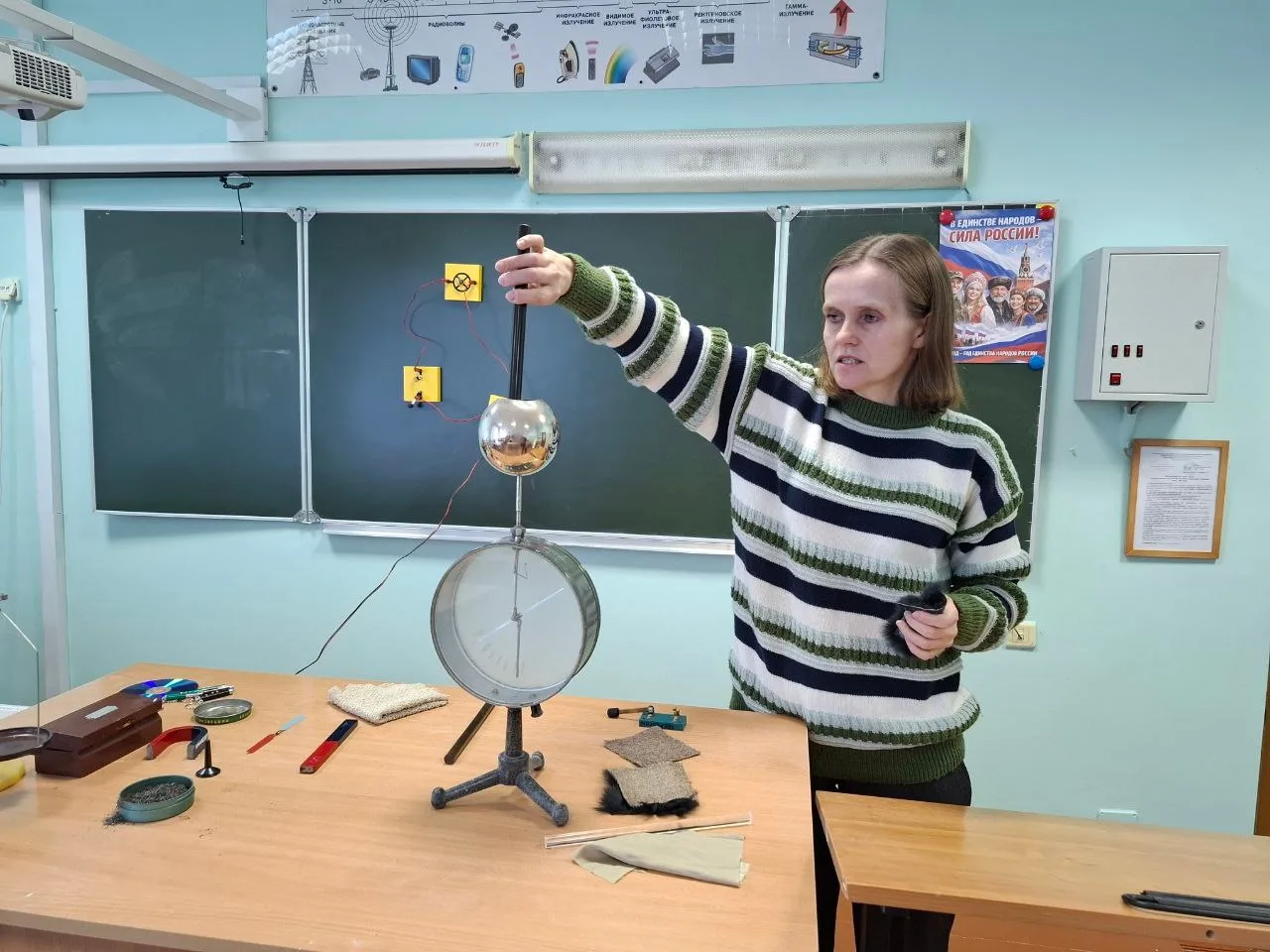 💡Елена Григорьевна Фоменко, учитель физики, провела познавательные физические опыты, которые демонстрировали примеры механических, электрических, магнитных, звуковых и световых явлений, а также приобретение начальных навыков работы с измерительными приборами: рыжажными и электронными весами.