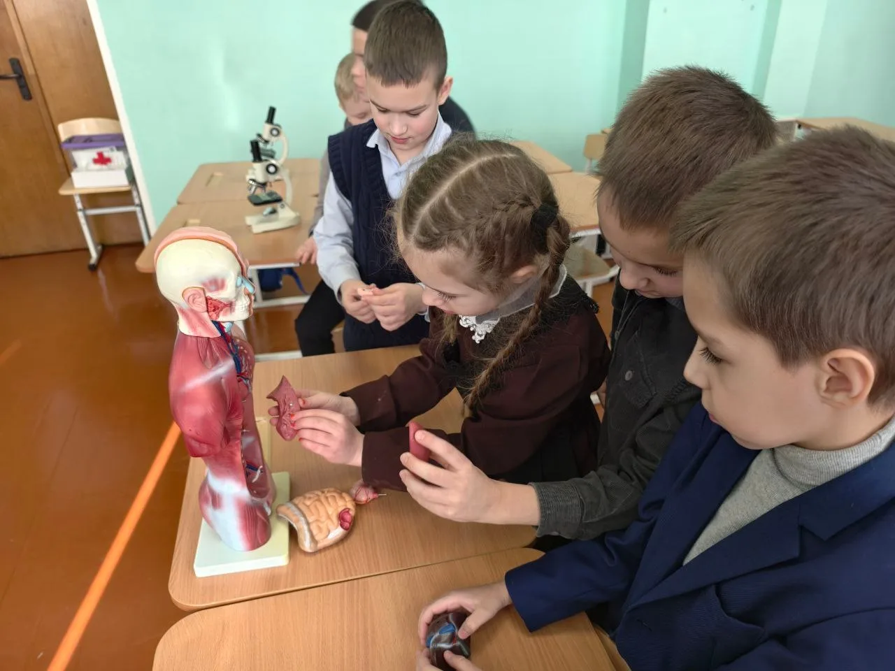 🔬 Они впервые увидели строение микроскопического инструмента, услышали о его значении и применении. Через окуляр микроскопа школьники смогли разглядеть невидимых глазу тайн: клеточки костей, кровь, кожный покров. Каждый ребёнок смог убедиться лично, что биология — это не просто учебники и правила, а настоящая магия науки!