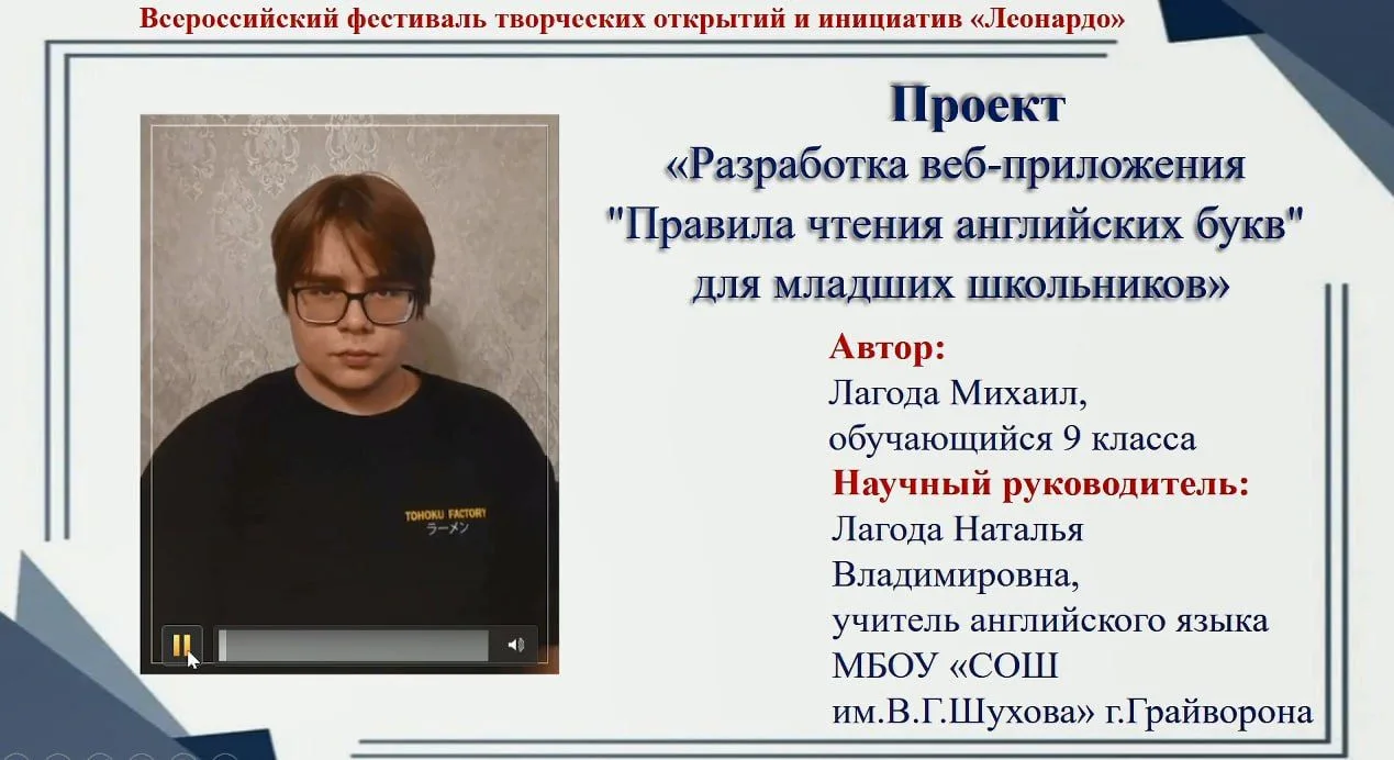 Студенёва Валерия, ученица 10-го класса школы имени В.Г. Шухова города Грайворона, разработала учебный видеоролик в ходе реализации индивидуального проекта.⚠️⚠️⚠️