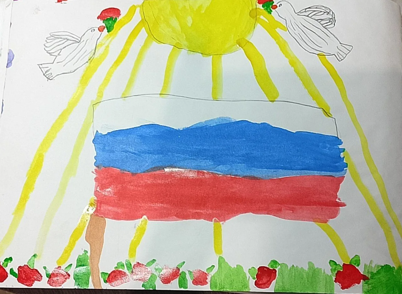 В завершении занятия был проведён конкурс рисунков «Россия- Родина моя». В своих рисунках дети изобразили Россию, её красоту, её символы и, конечно же, стремление к миру.