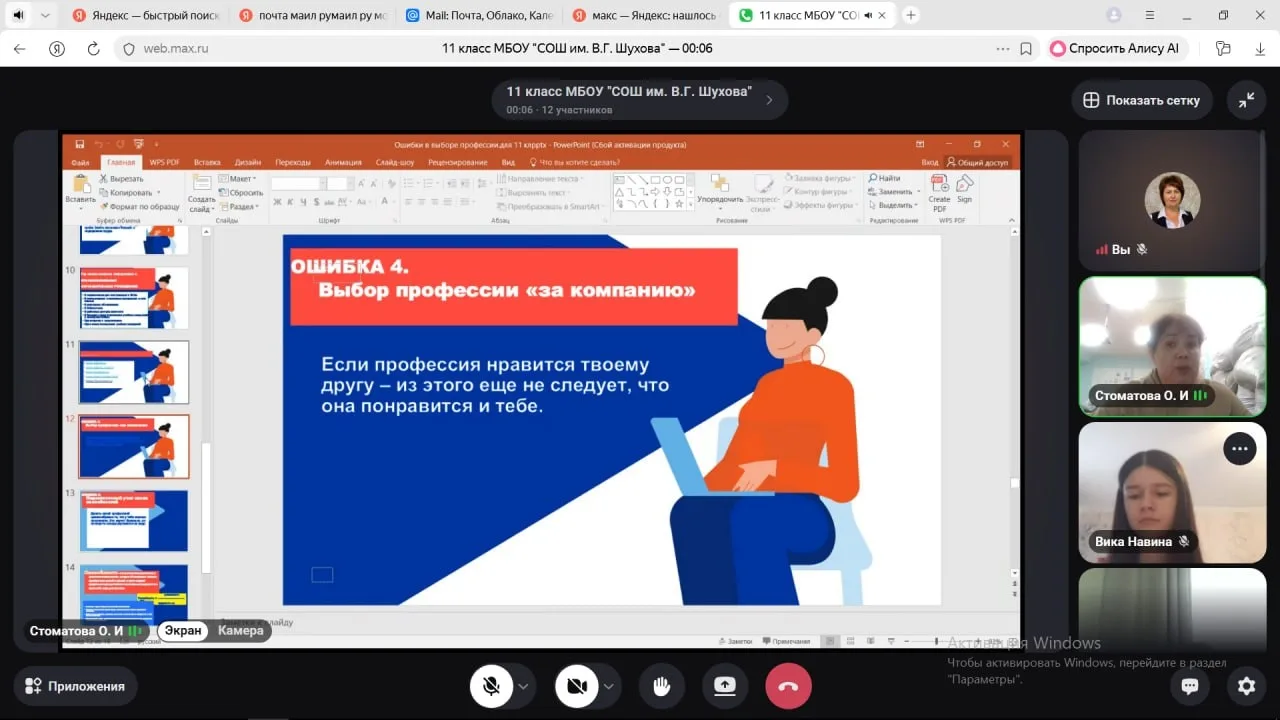 Учащиеся получили представление о возможных ошибках и приобрели практические навыки оценки своих возможностей и потребностей рынка труда. Надеемся, что этот урок станет важным этапом на пути к успешной самореализации наших учеников.