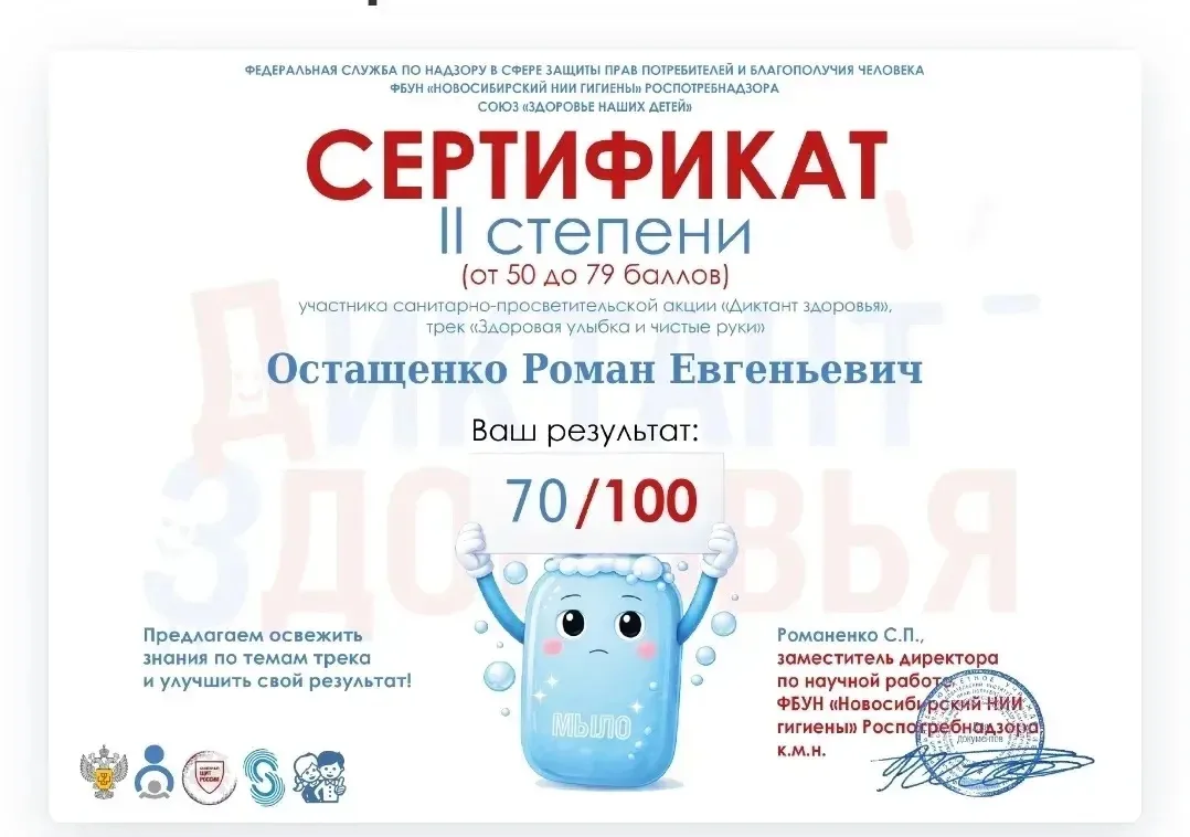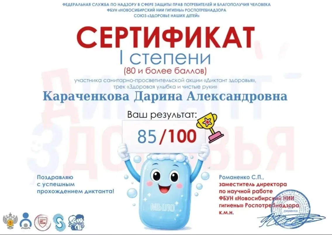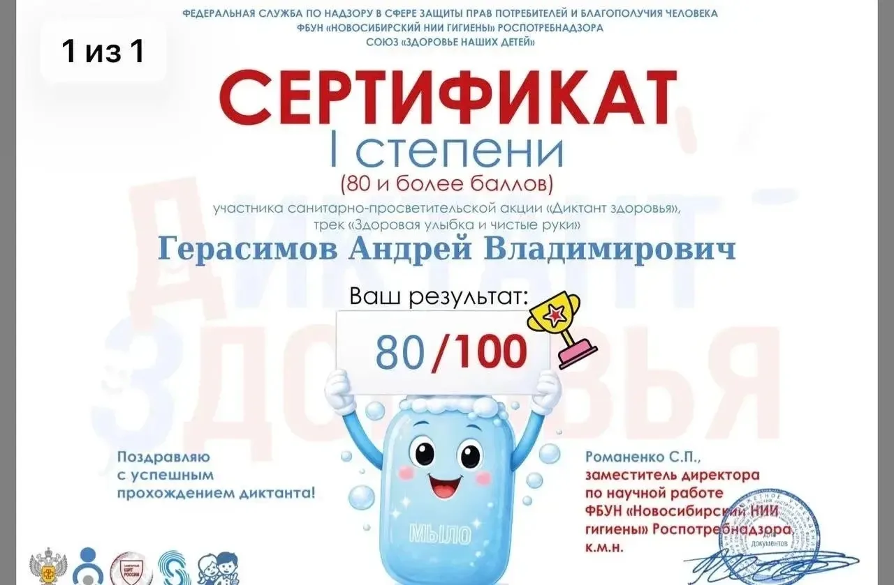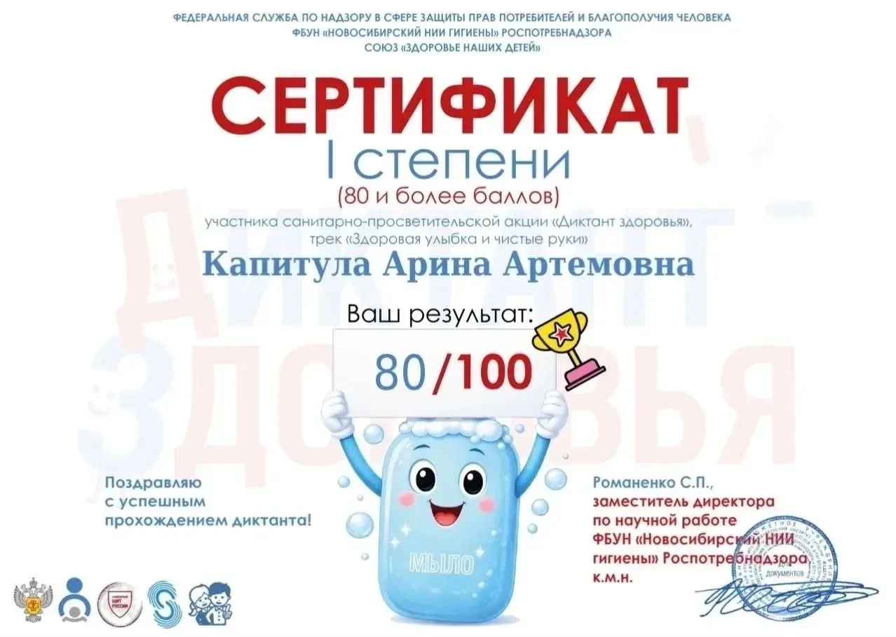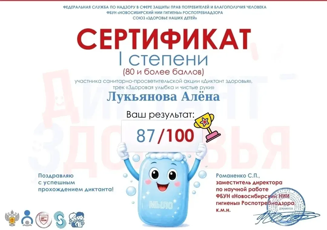 «Диктант здоровья» поддержан проектом «Сибирская школа – территория здоровья» межрегиональной ассоциации «Сибирское соглашение» при участии Национального союза «Здоровье наших детей».