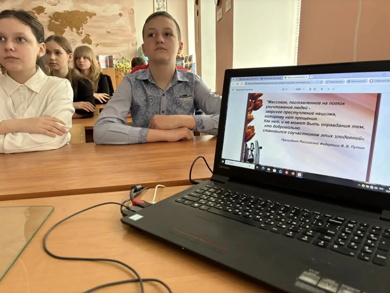 15 апреля среди учащихся 8-11 классов под руководством учителя истории и обществознания Соловьева Ильи Николаевича состоялся конкурс "Славе не меркнуть". Традициям жить, посященный дню памяти жертв геноцида русскго народа. Ребята представили презентации на различные темы: ученица 9А класса Семкович Екатерина представила рассказ о нашем великом земляке - военачльнике Ватутине Николае Федровиче; ученики 10 Б класса Бондаренко Егор и Черкасова Алина рассказали об ужасах фашистских концлагерей, и почему важно не забывать о Победе; ученицы 10 Б класса Трибуль Дарья, Климова Василиса, Ходеева Елизавета прдеставили подробный рассказ о подвиге военного врача Георгия Федоровича Синякова, который спас тысячи пленных в Кюстринском концлагере.