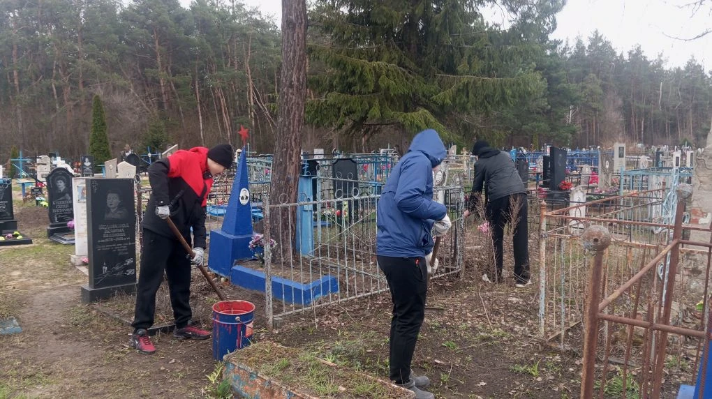 В рамках месячника добровольного служения Белгородской области наши ученики и педагоги приняли участие в важном и благородном деле — наведении порядка на захоронениях советских солдат и территории братской могилы 364 воинам на улице Первомайская.