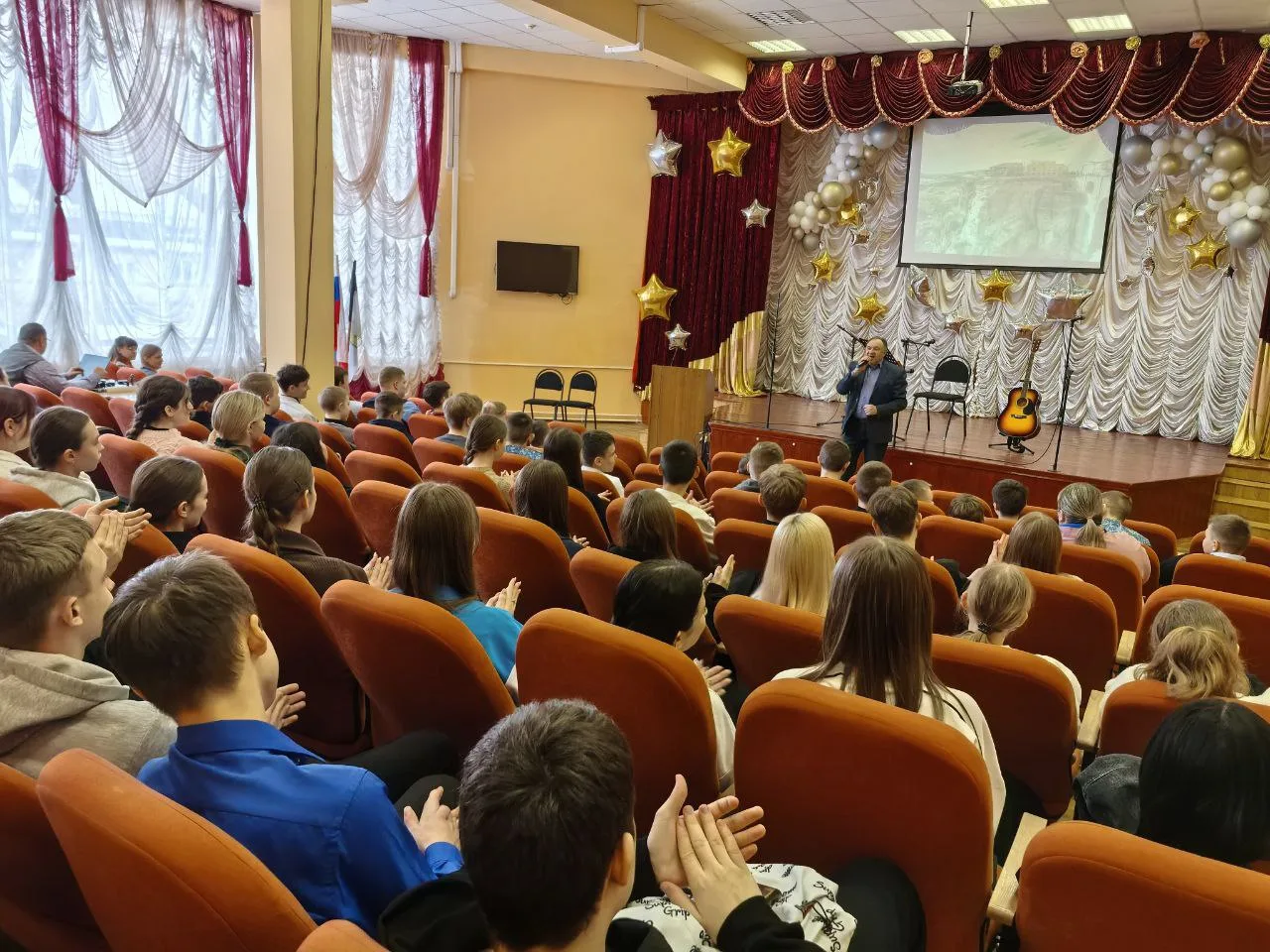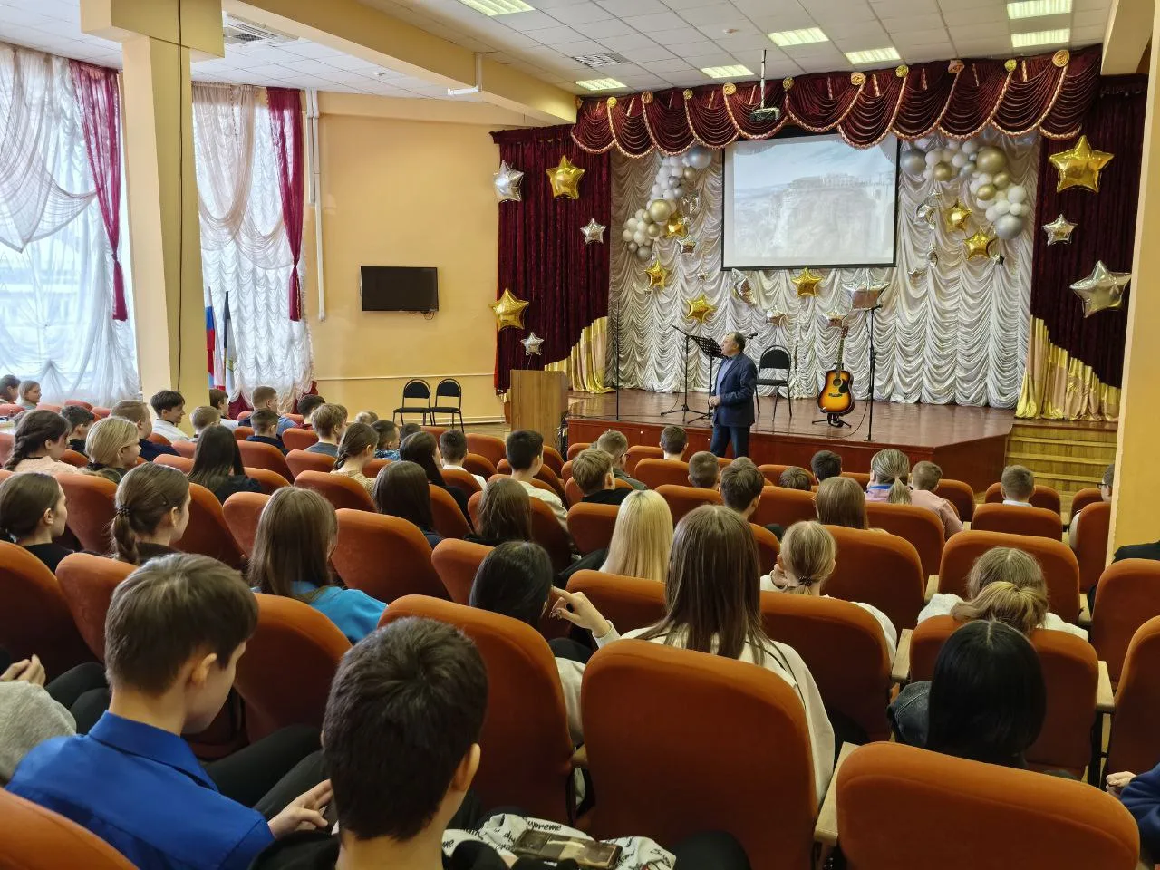 Гостем мероприятия стал автор-исполнитель Александр Шепило, чьи песни проникновенно рассказывают о мужестве, дружбе и верности долгу. Его творчество стало мостиком между поколениями, позволяя сегодняшним школьникам прикоснуться к истории через искренние строки и мелодии.