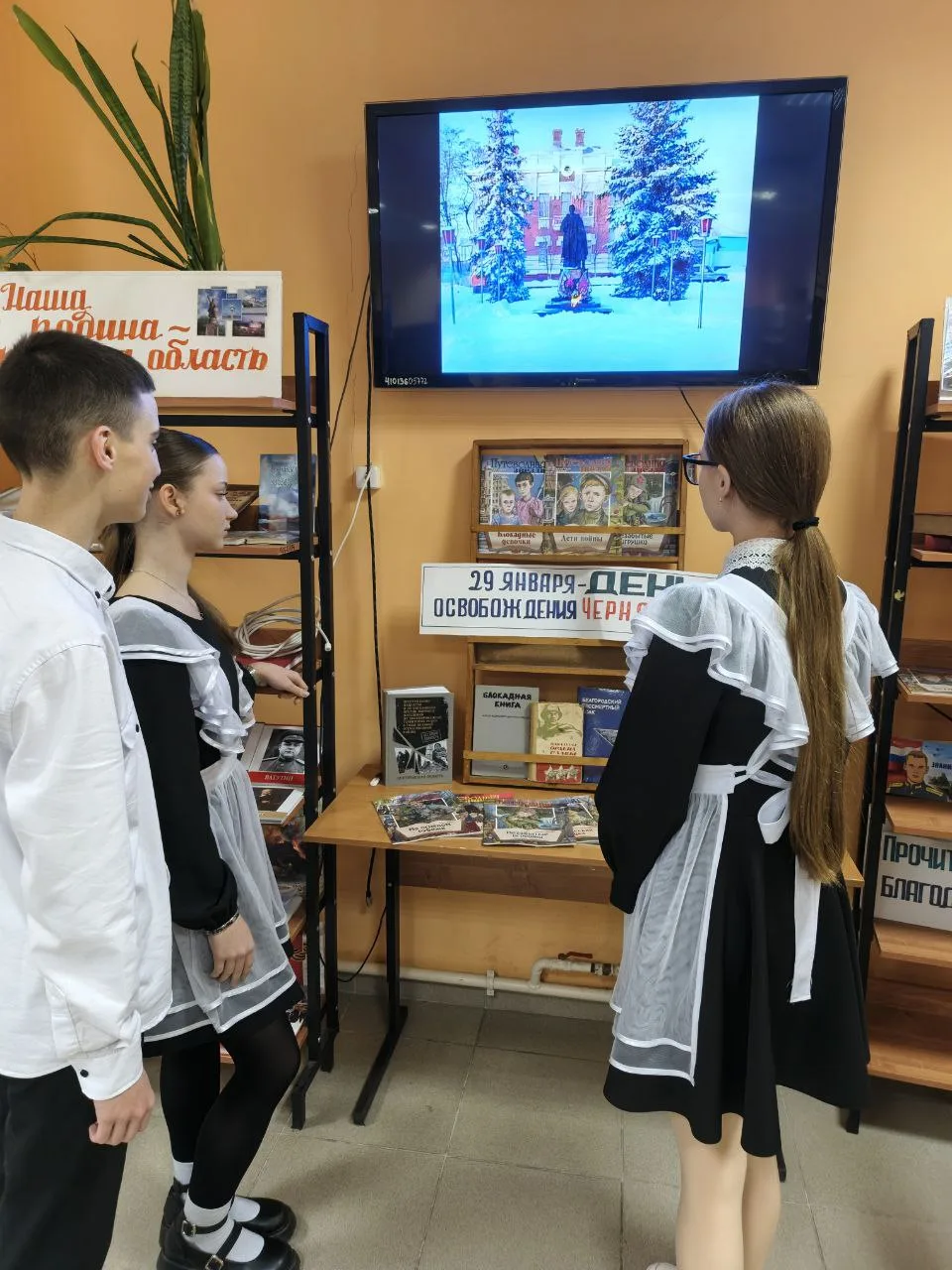 В День освобождения Чернянки от немецко-фашистских захватчиков, 29 января, в нашей школе прошло значимое мероприятие, организованное работниками районной библиотеки, для обучающихся 6 и 7 классов.