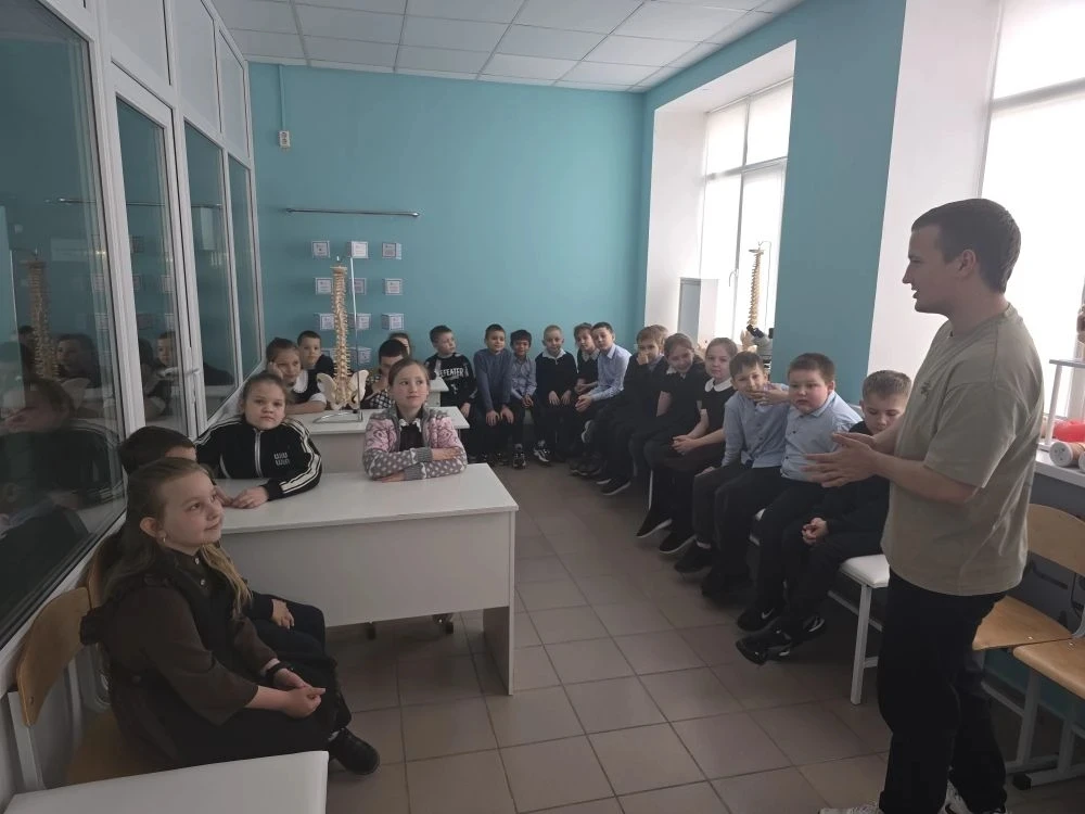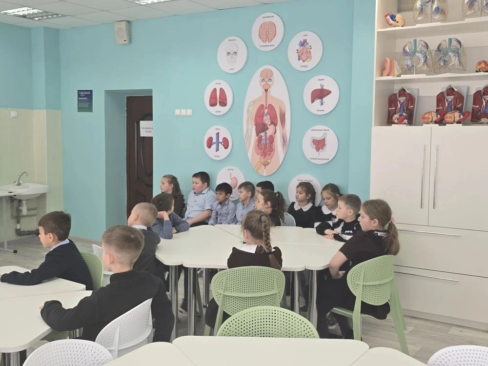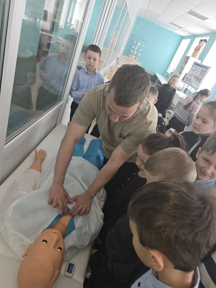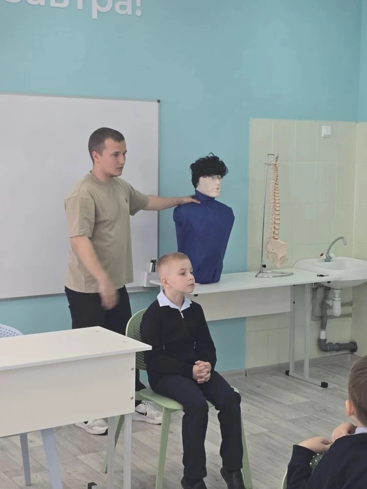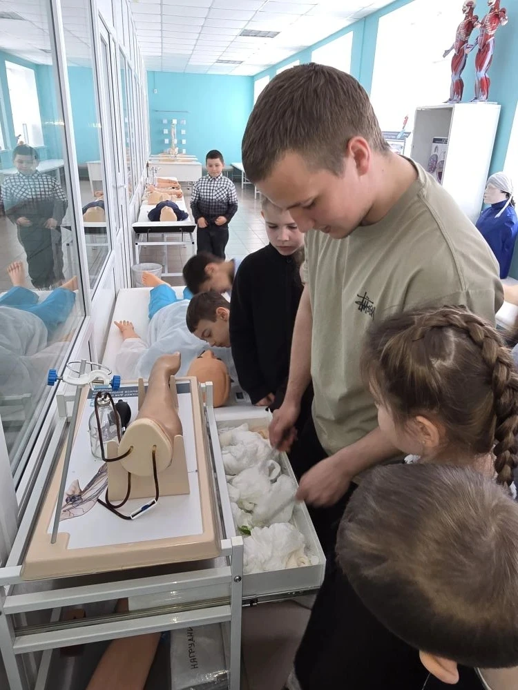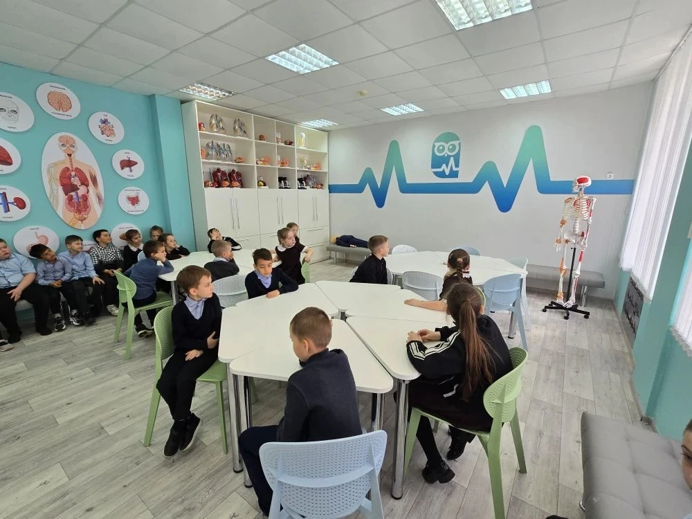 Экскурсию для юных исследователей провёл ученик 11 «А» медицинского класса — Роман Судаков. Он с увлечением рассказал ребятам о профессии медика, показал, как устроен кабинет врача, и познакомил с медицинским оборудованием.