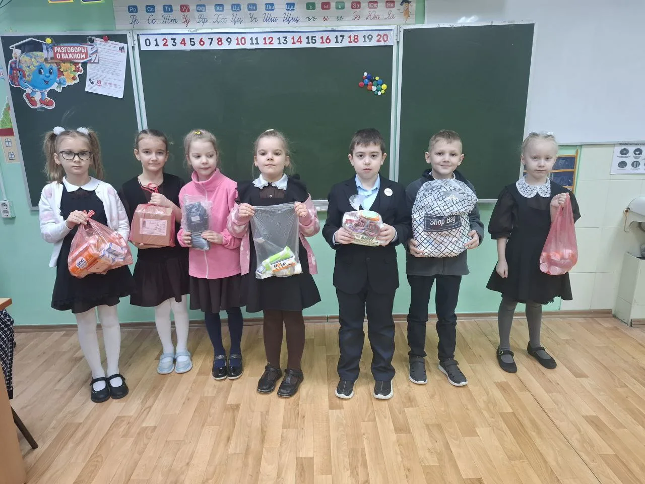 Обучающиеся с родителями и весь педагогический коллектив школы не останавливаясь продолжают помогать нашим защитникам, которые принимают участие в специальной военной операции.