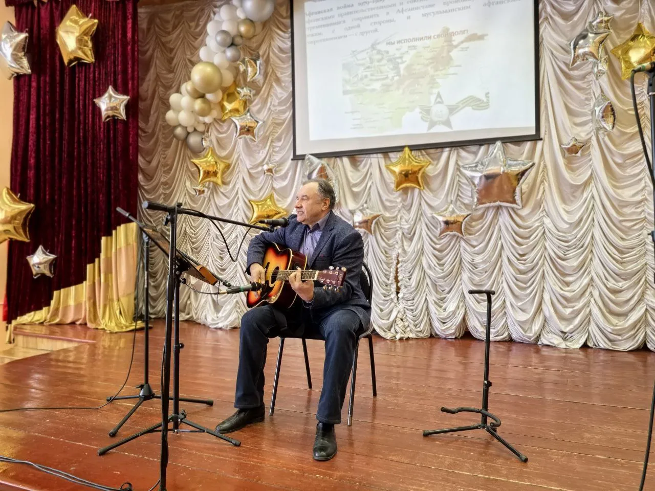 Александр Анатольевич исполнил несколько композиций, каждая из которых была пропитана глубокими эмоциями и воспоминаниями участников боевых действий.