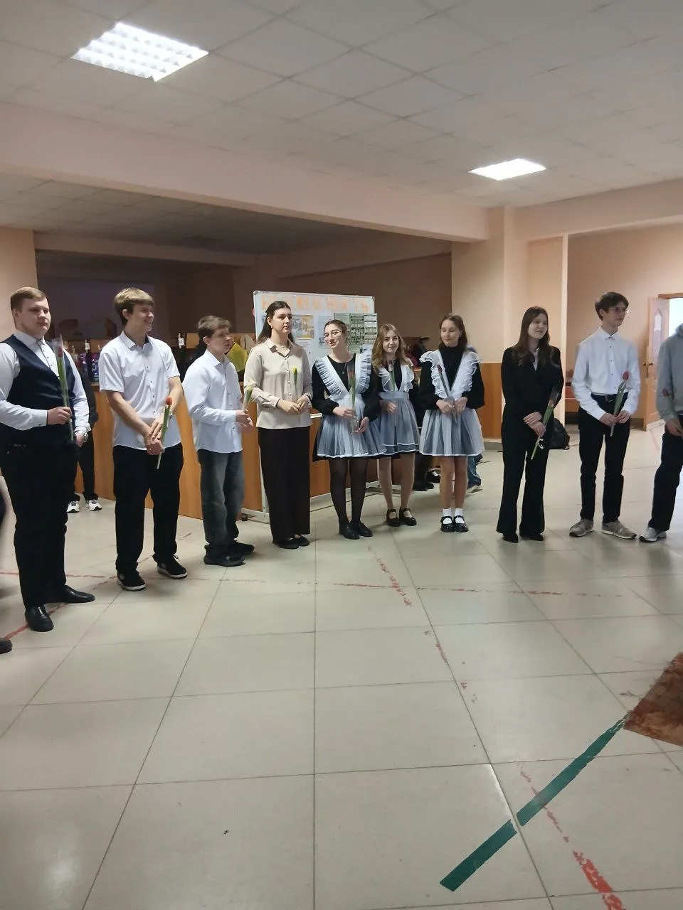 Утро ознаменовалось ярким сюрпризом: ребята из 9-х и 11-х классов встретили прекрасный женский коллектив нашей любимой школы улыбками, цветами, тёплыми словами и зажигательной музыкой!