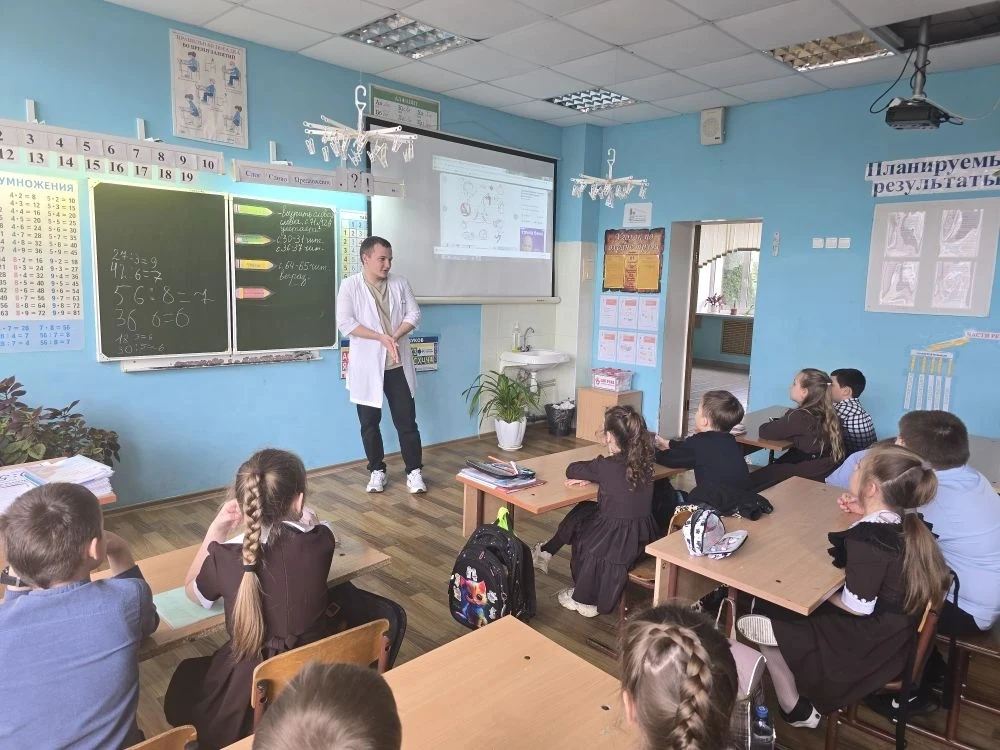 В ходе беседы Дмитрий Иванович рассказал ребятам о профессии онколога, о том, насколько важна ранняя диагностика онкологических заболеваний и какие современные методы лечения существуют. Особое внимание было уделено профилактике: врач объяснил, как здоровый образ жизни, регулярные обследования и внимательность к собственному организму помогают предотвратить развитие многих серьёзных заболеваний.