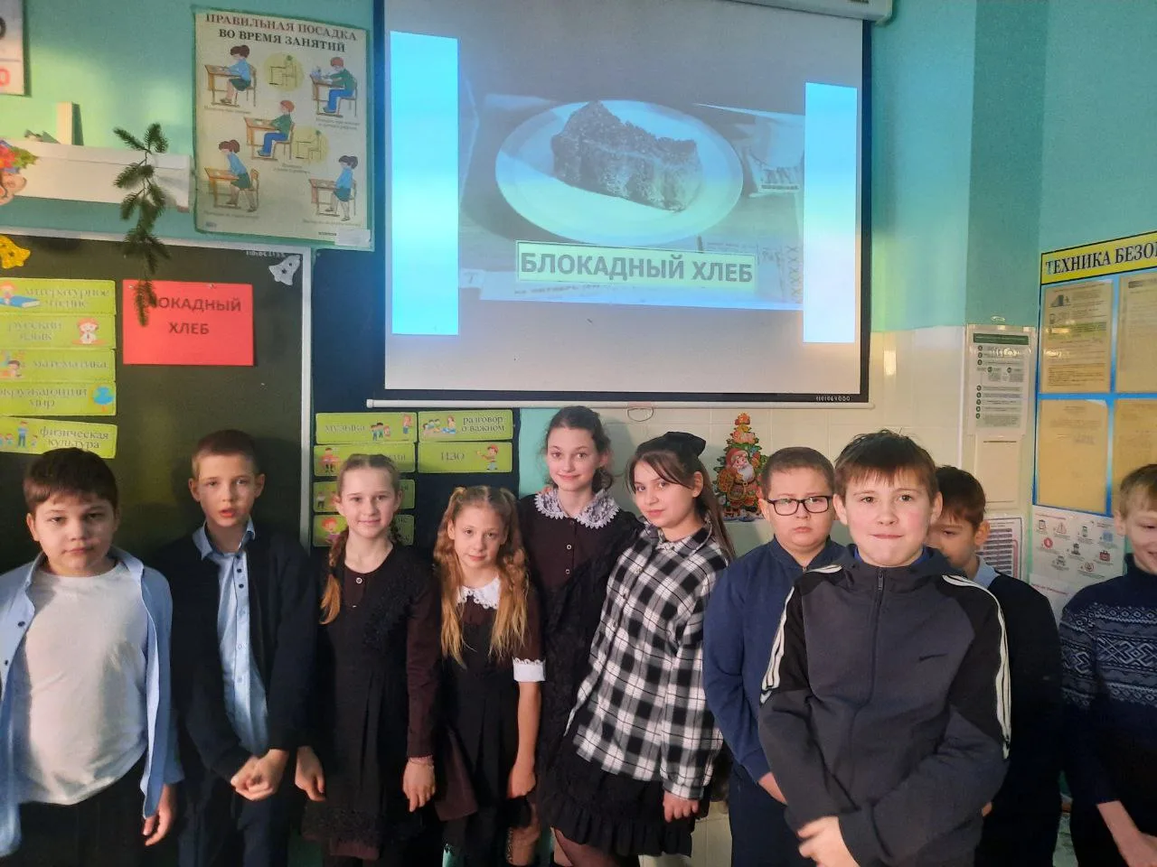 Сегодня, в день полного освобождения Ленинграда от блокады, для учеников 4«в» класса школьным библиотекарем –Ириной Захаровой, был проведен Час памяти «Блокадный хлеб».