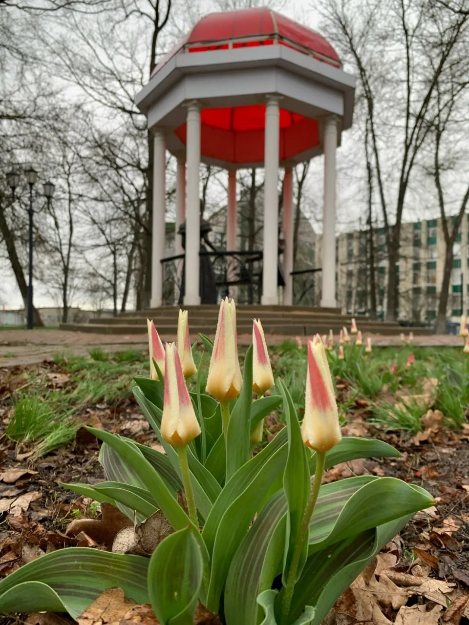 Весна уверенно набирает обороты и первые тюльпаны уже украшают нашу территорию.