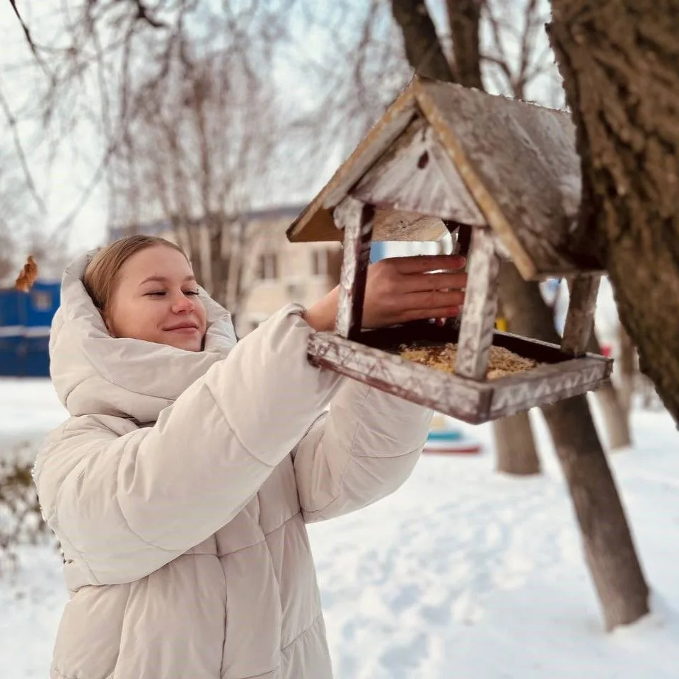 В это время года им приходится непросто. Те, кто не улетают в тёплые края и остаются на нашей морозной земле, нуждаются в регулярной помощи. Поэтому наши девочки заполнили кормушки едой так, чтобы хватило всем.