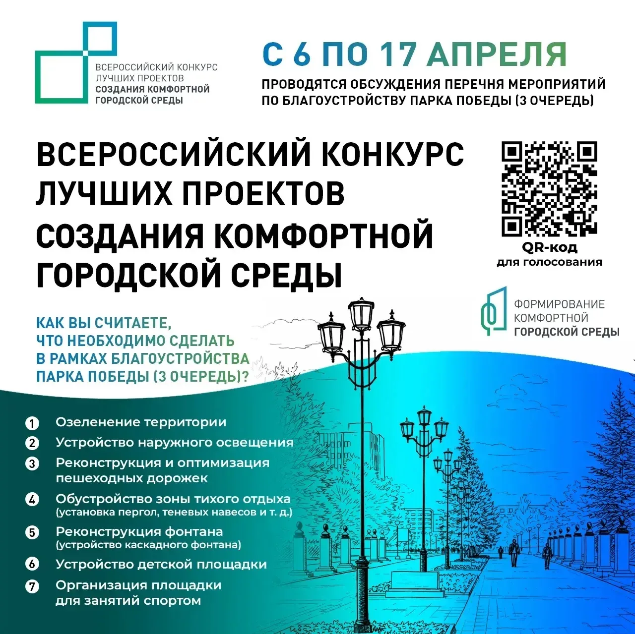 Внешний облик наших парков и скверов — это всегда народный выбор, и нам важно мнение каждого. Обсуждение проходит в онлайн-формате и продлится до 17 апреля. Принять участие может каждый. Переходите по ссылке ниже и выбирайте, что необходимо сделать в рамках 3-й очереди: