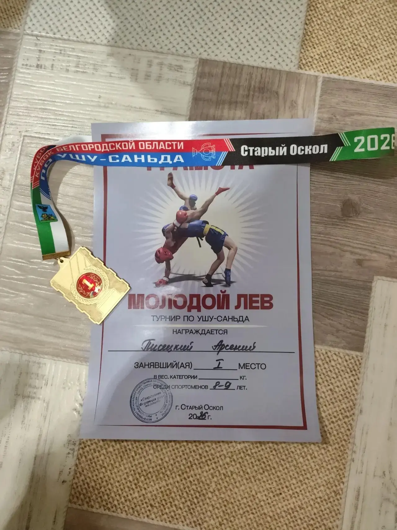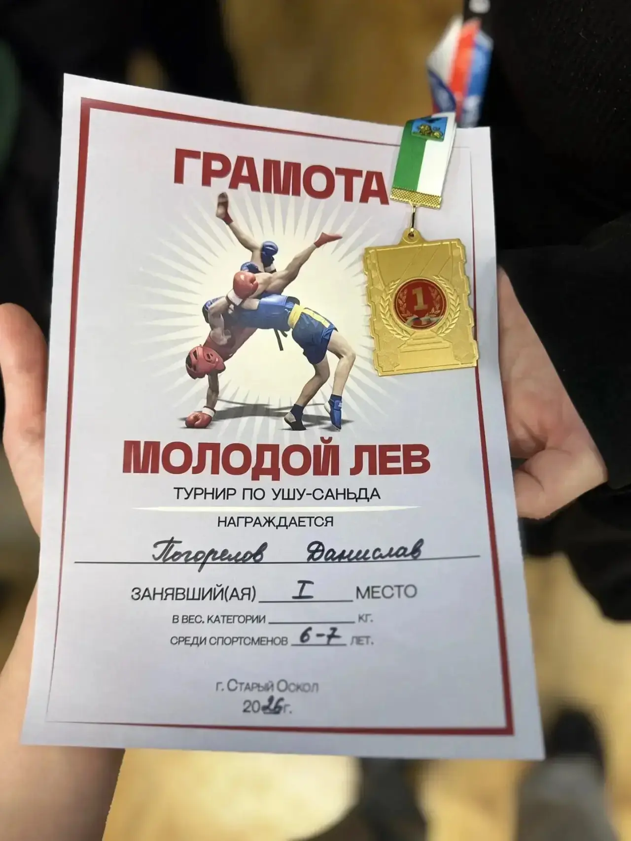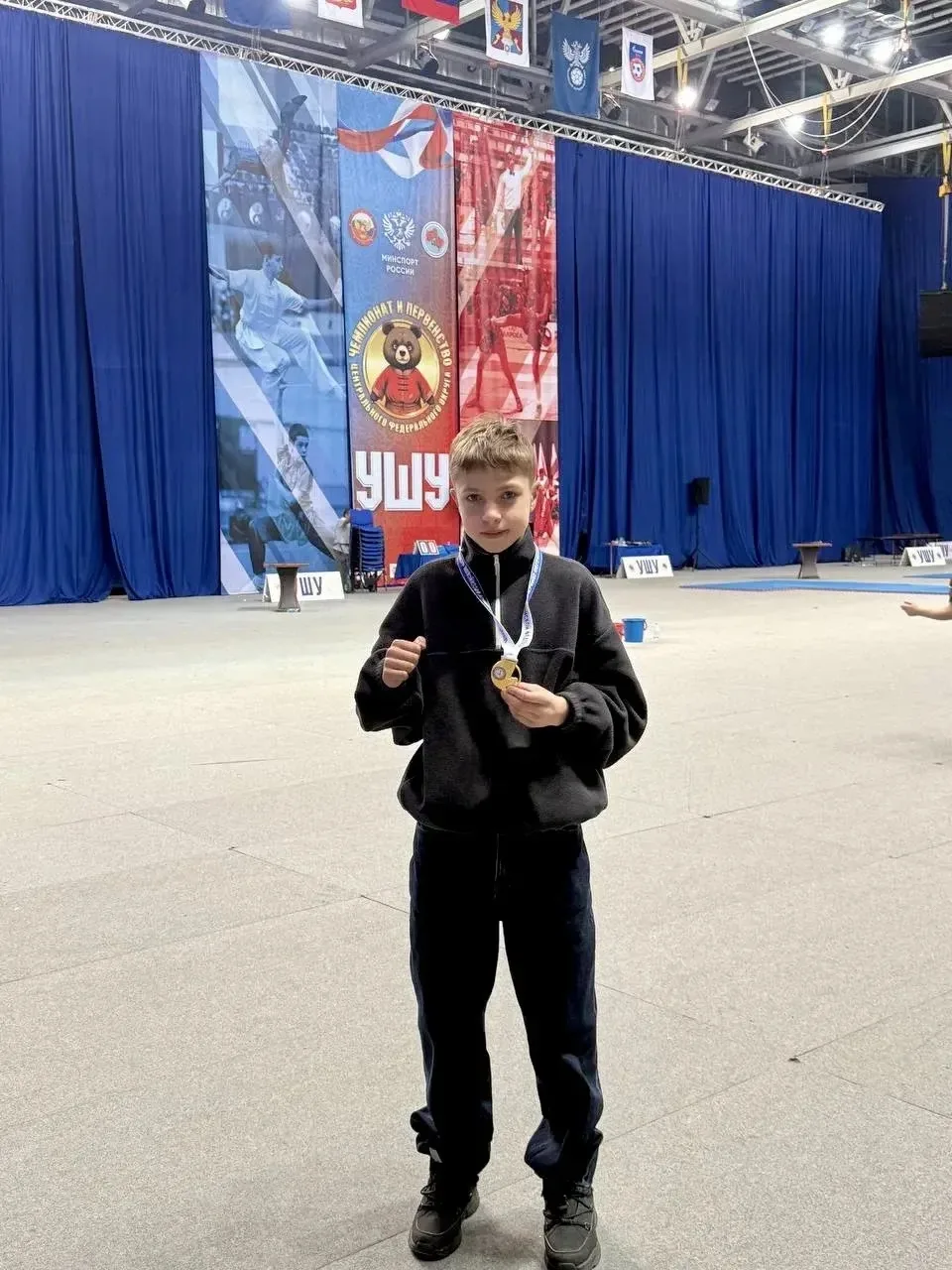 Максим завоевал золотую медаль среди юношей 12-13 лет на соревнованиях ЦФО по ушу‑саньда! 💪