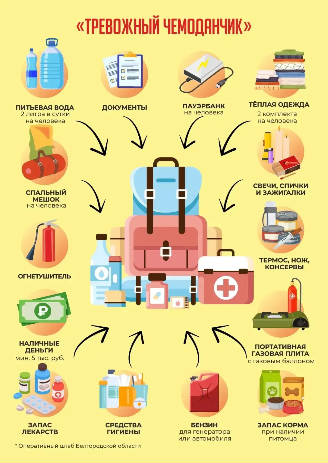 что взять в «тревожный чемоданчик» (на человека):