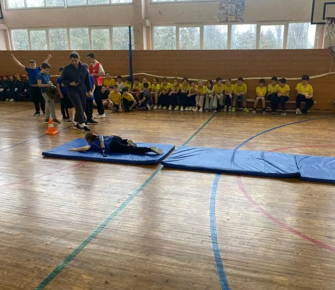 Сборная команда нашей школы продемонстрировала отличную физическую подготовку и успешно справилась с заданием. Состав команды: Головко М 8а, Смоленская А 8а, Савенко С 8а, Финк М 9б, Некрасов М 8в, Кривошеев Д 8б, Абдуллаев Д 8б, Сергеев М 8б, Каськов М 8б, Ушаков Р 8б.