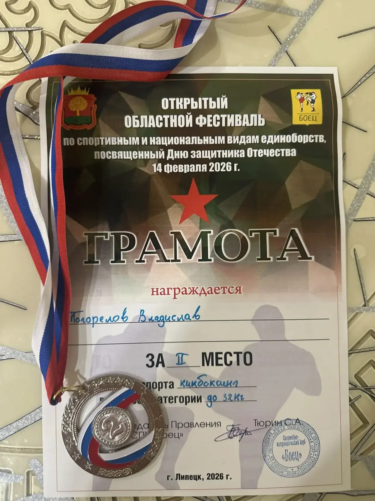 В упорной борьбе в весовой категории до 32 кг Владислав достойно выступил в дисциплине кикбоксинг, продемонстрировав силу воли, выдержку и спортивное мастерство. Серебряная награда — результат упорных тренировок, целеустремлённости и поддержки наставников и семьи.