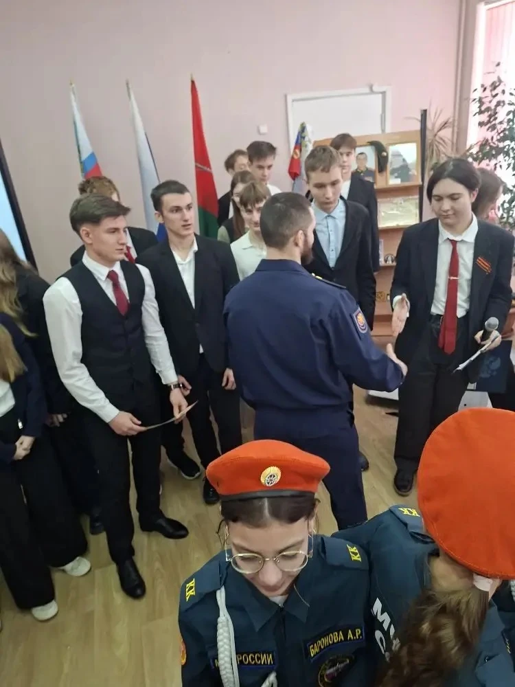 "Патриот.Ты" . На мероприятии присутствовал Прусенко А.С., участник СВО на территории Украины, педагоги, учащиеся 9-11 классов, класс МЧС.