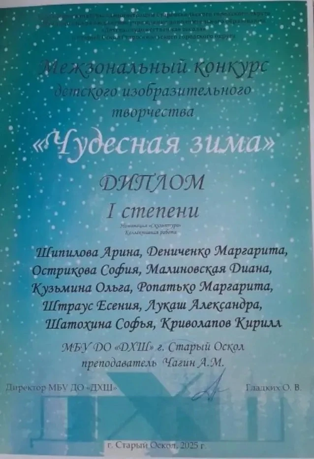 Поздравляем Острикову Софию, ученицу 9 ,,В" класса, с первым местом в межзональном конкурсе детского изобразительного творчества.