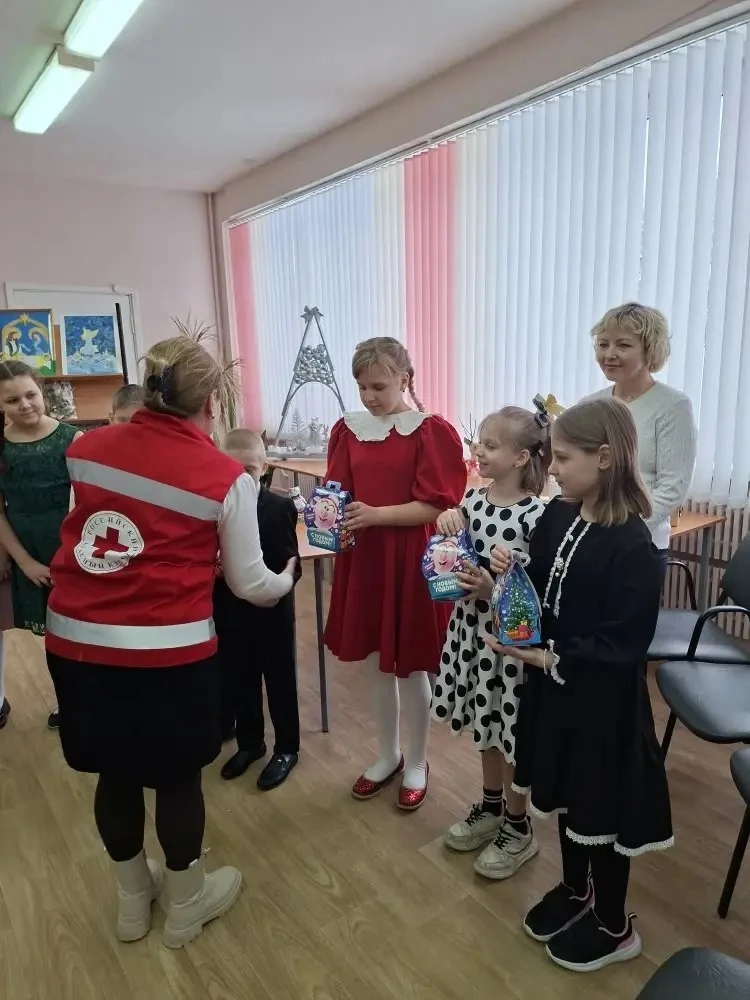 В конце праздника ребята получили подарки от Красного Креста ".