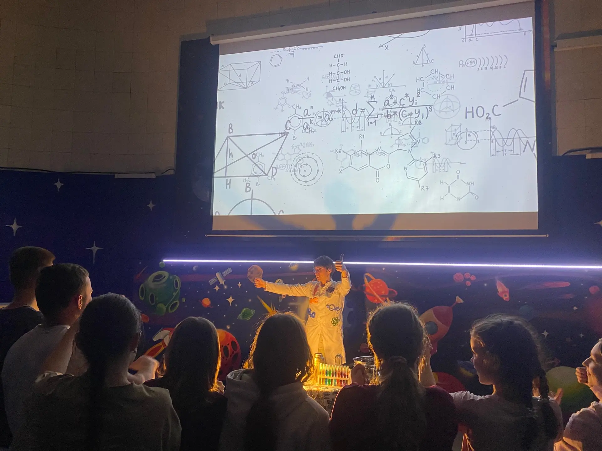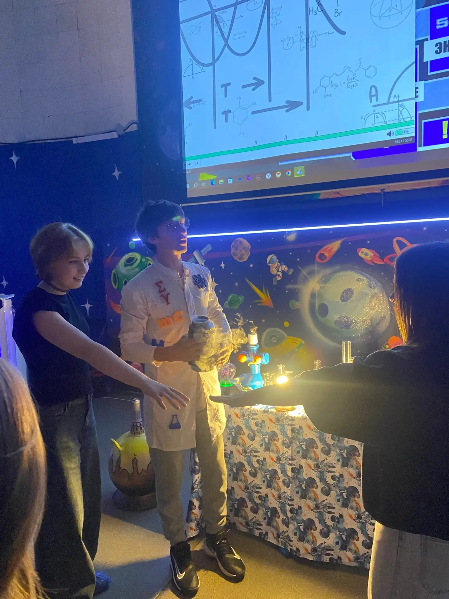 Завершилось путешествие в планетарии, где ребята не только узнали много интересного о звёздах и планетах, но и стали участниками захватывающих химических опытов с жидким азотом. Это было не только зрелищно, но и очень познавательно!