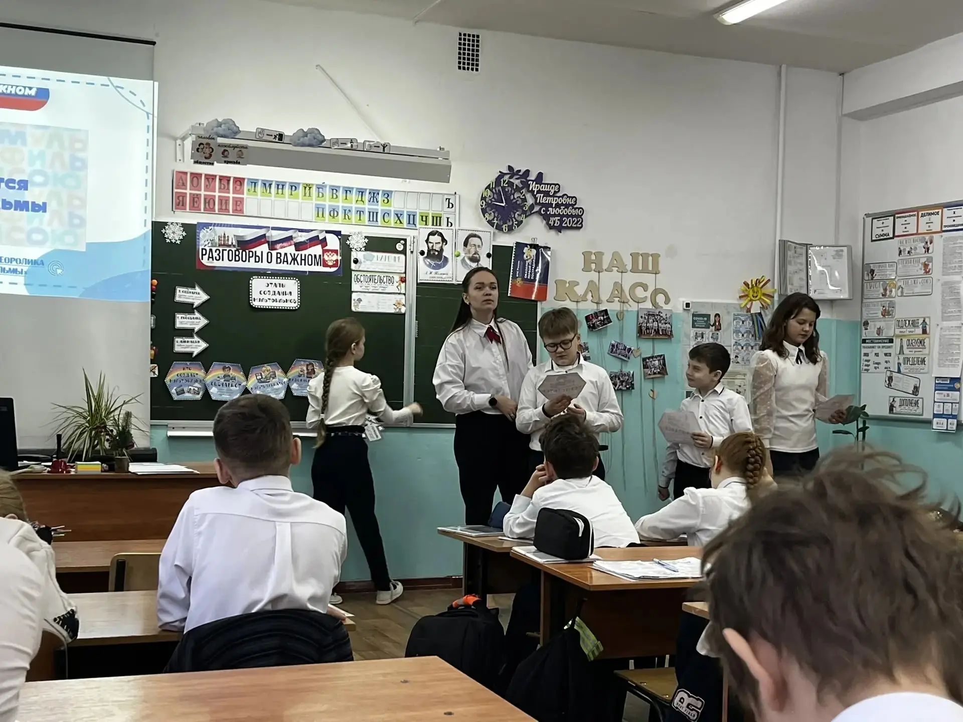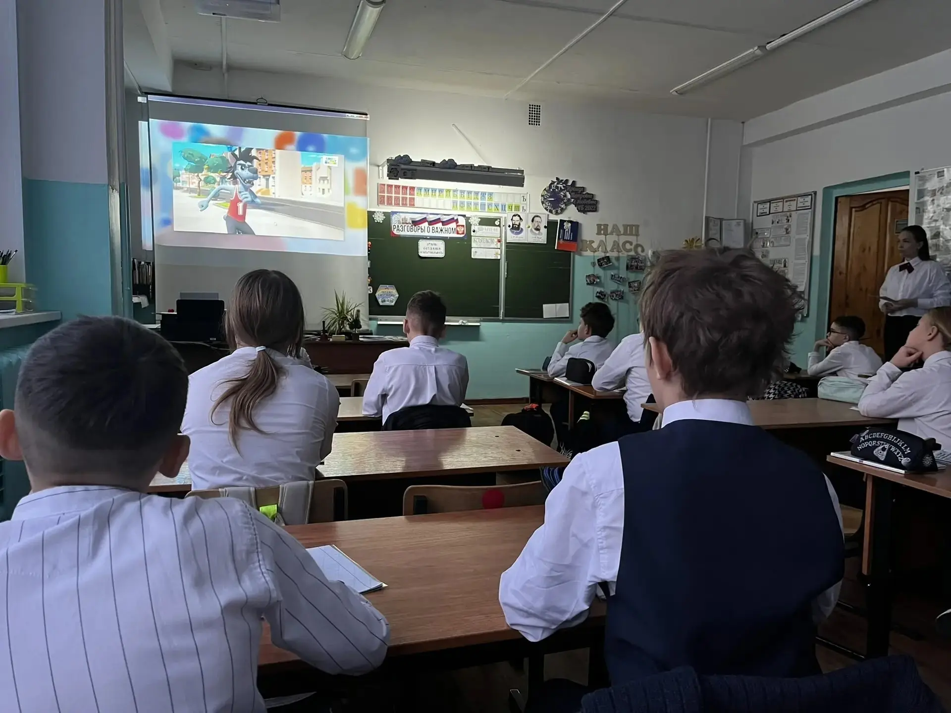 День начался торжественно: с поднятия флагов и традиционной линейки, где прозвучали важные слова о предстоящих задачах и целях. Затем, по традиции, состоялись «Разговоры о важном» на тему: « Как создаются мультфильмы»
