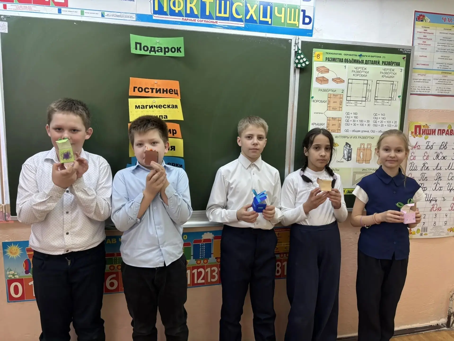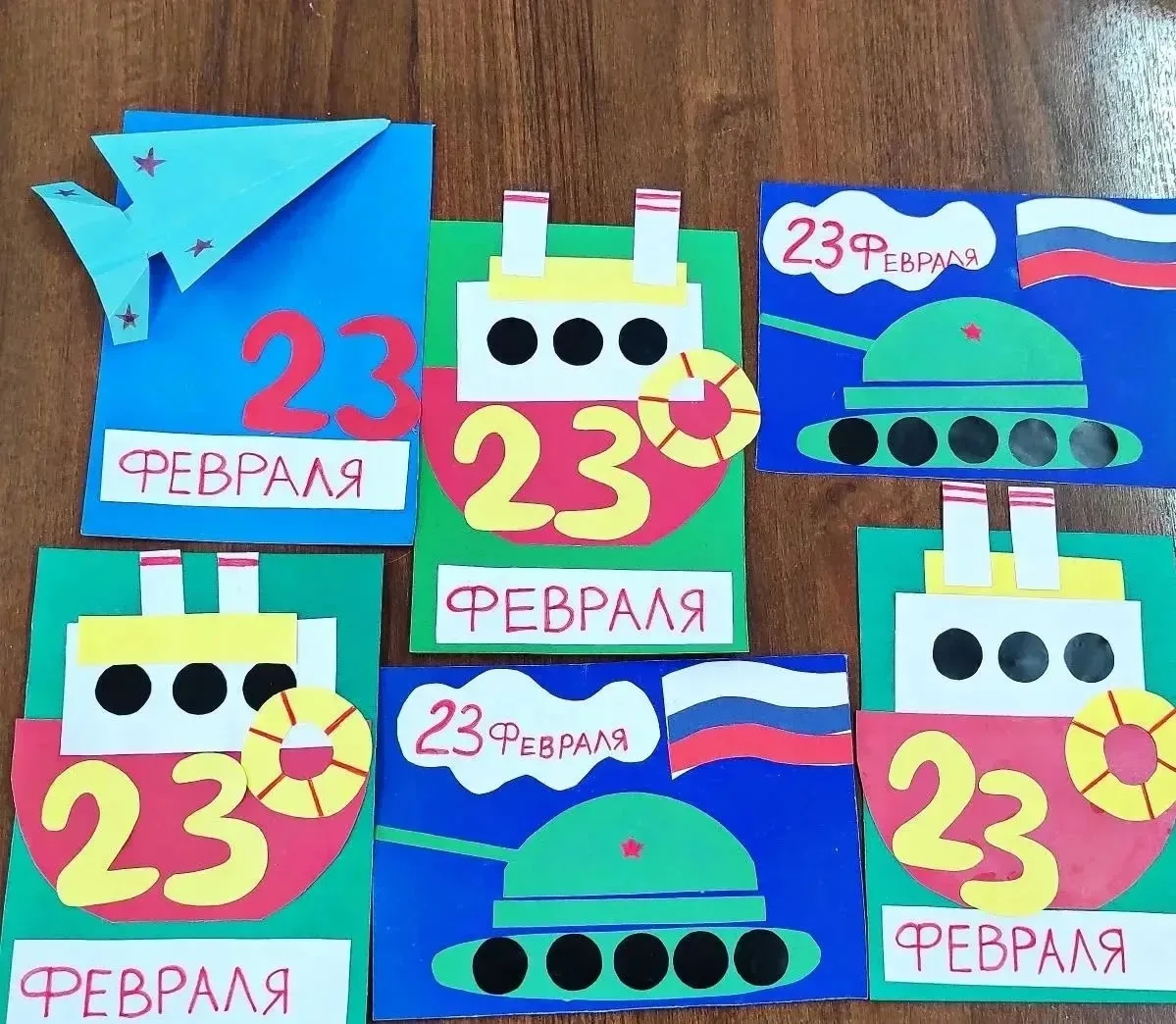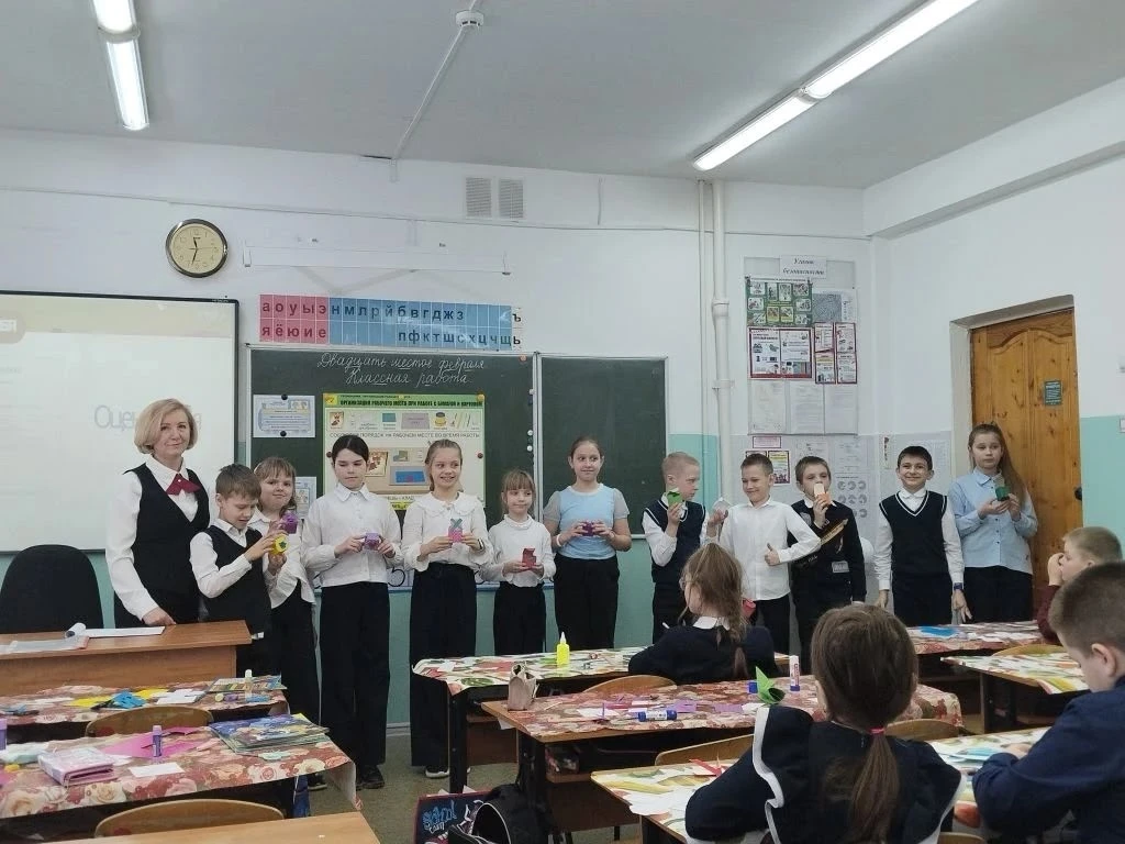 Каждый сам выбирал материалы, продумывал детали, старательно вырезал и клеил. Кто-то захотел добавить побольше ярких цветов, кто-то — сделать строгий мужской дизайн, а кто-то спрятал внутрь тёплые пожелания. Главное, что все работали с огромным интересом и любовью.
