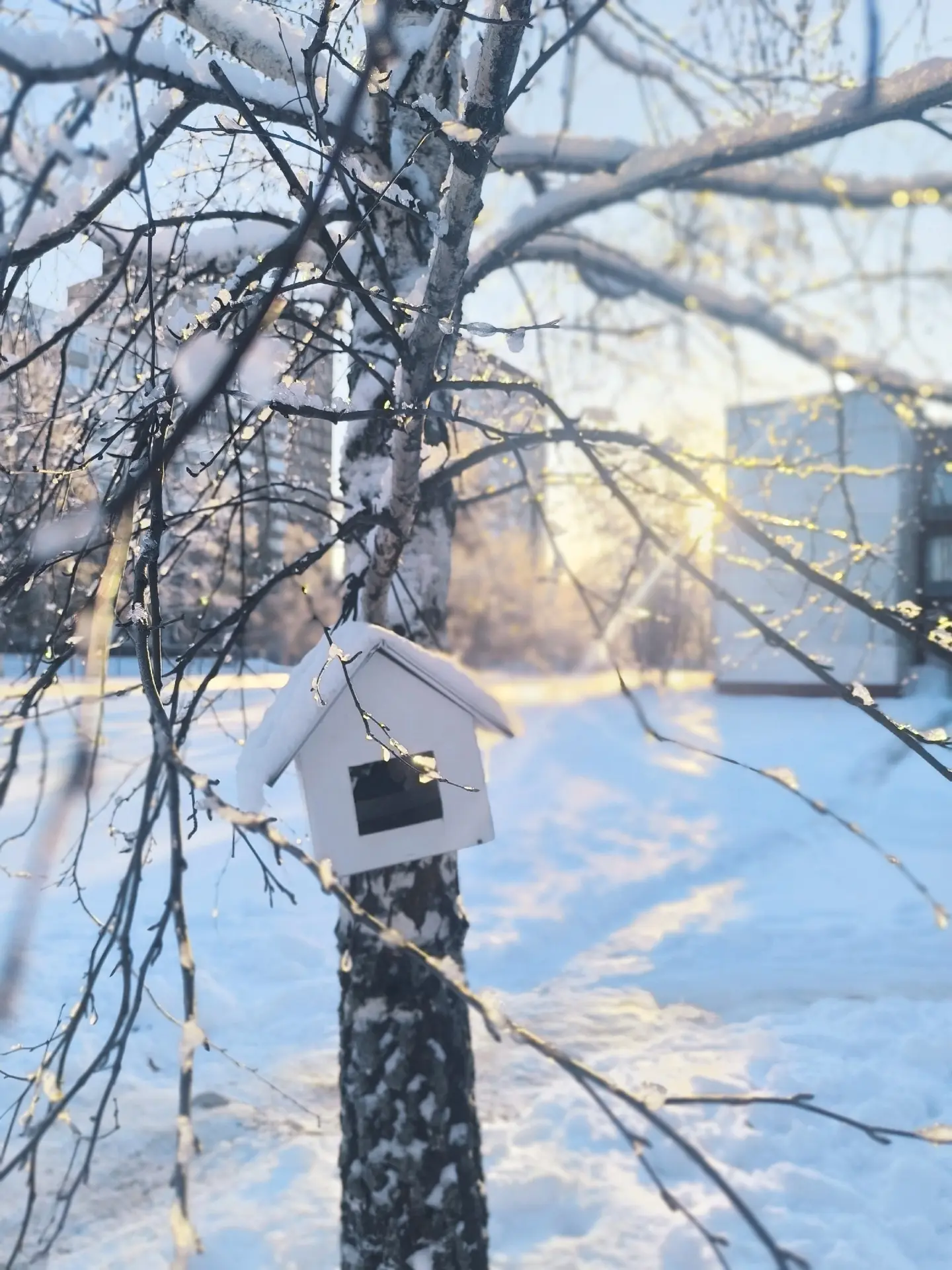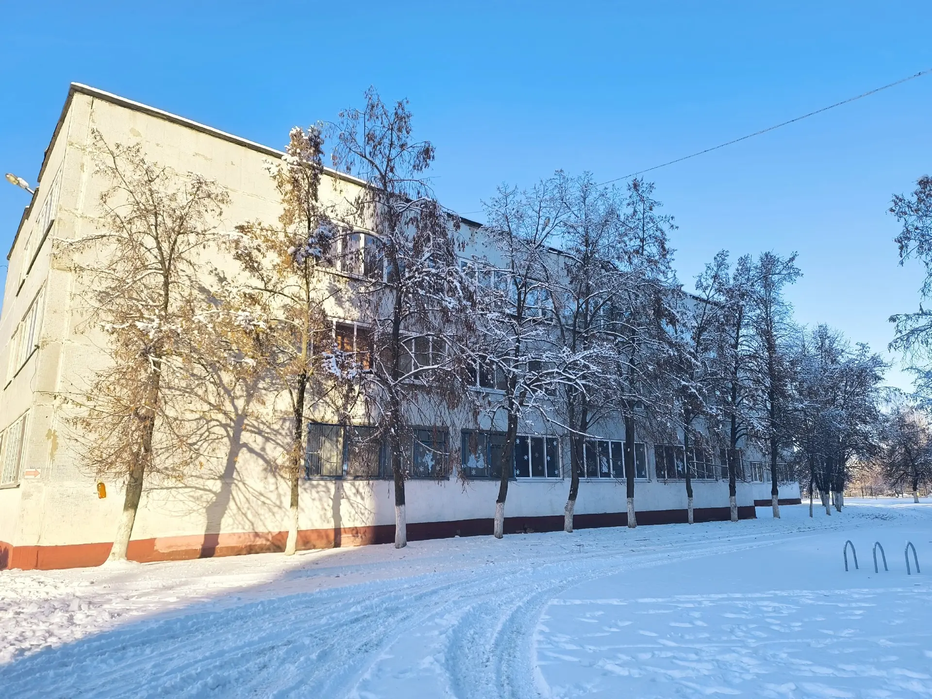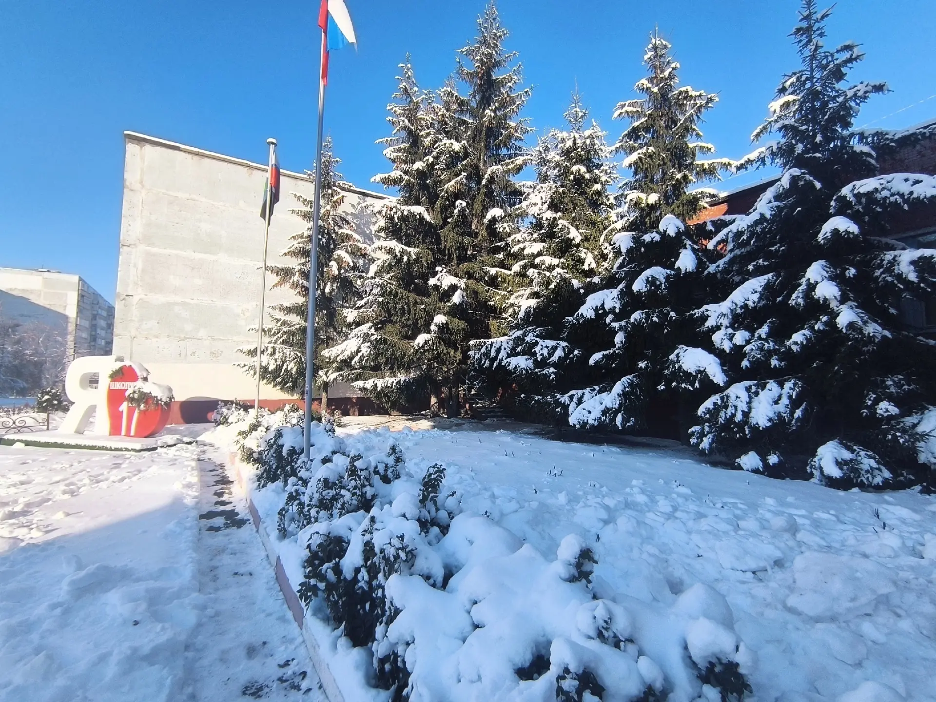 Территория школы сегодня - мастерская света и тени, где каждый сугроб и ветка выстроились в идеальную композицию. 🖼