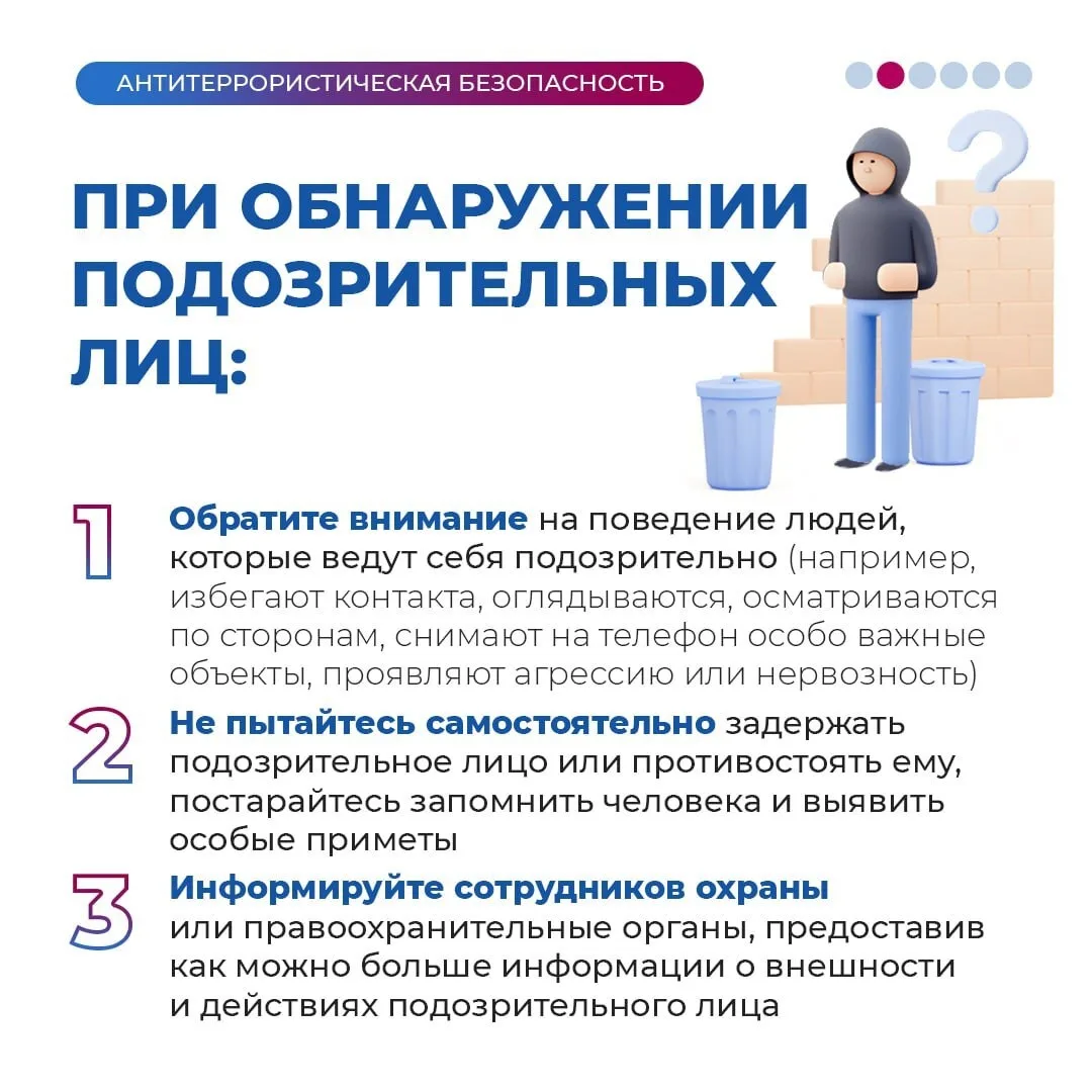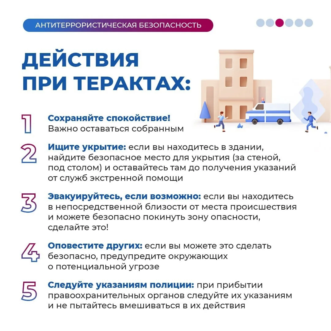 В этих карточках — ключевые рекомендации о том, как распознать опасность и грамотно действовать при угрозе теракта.