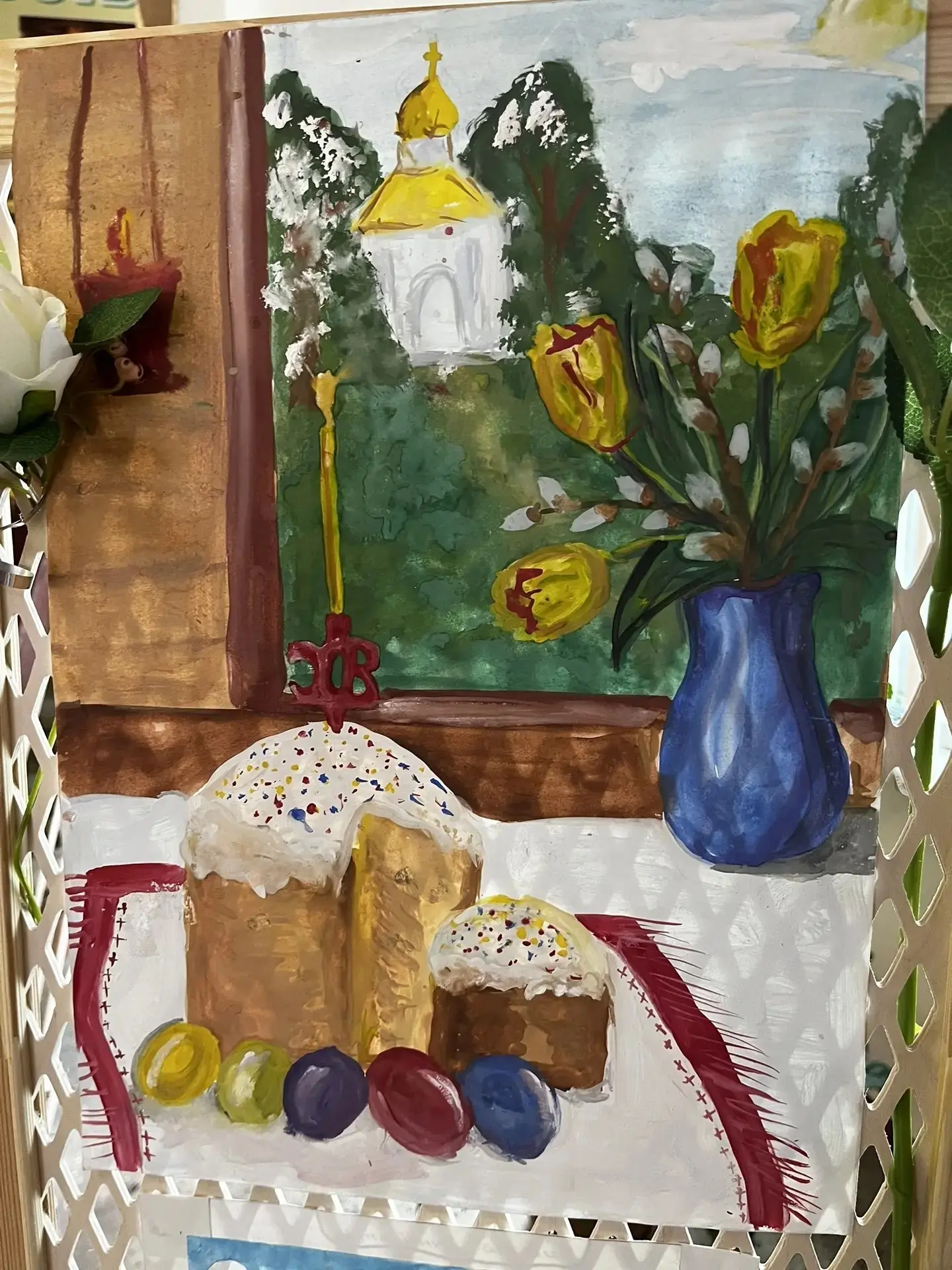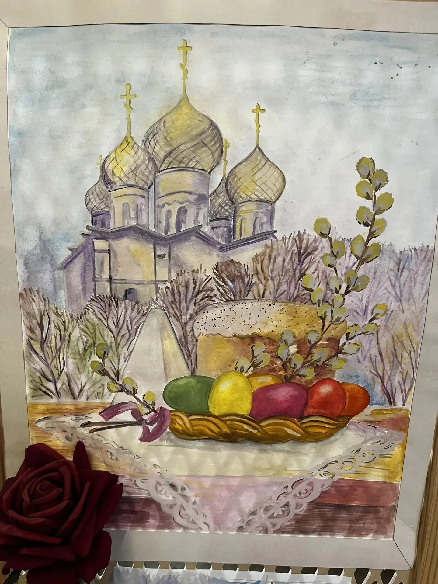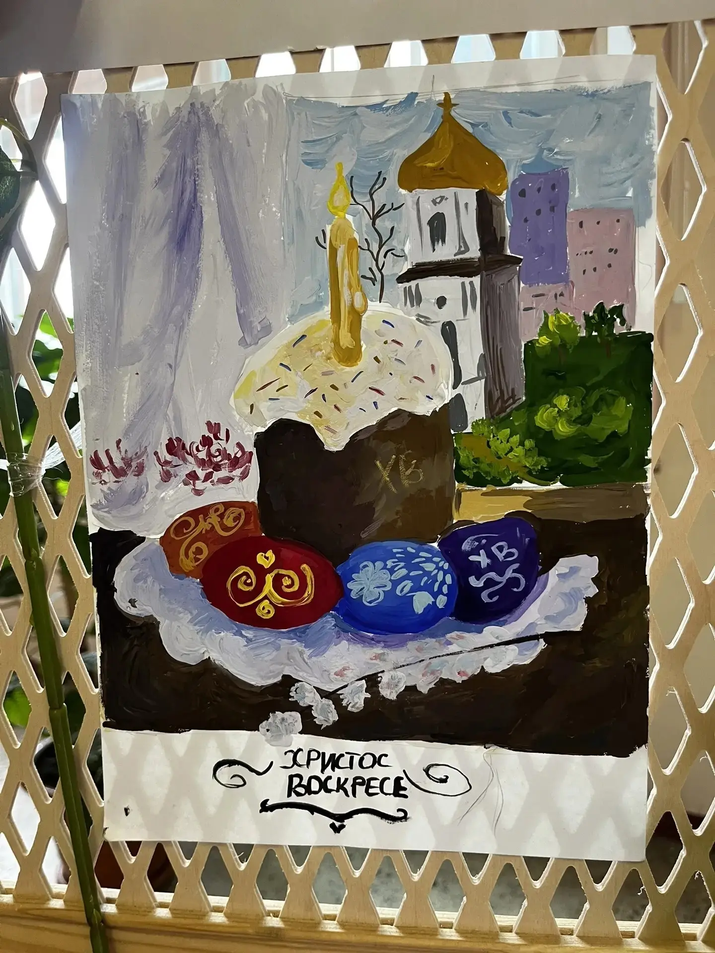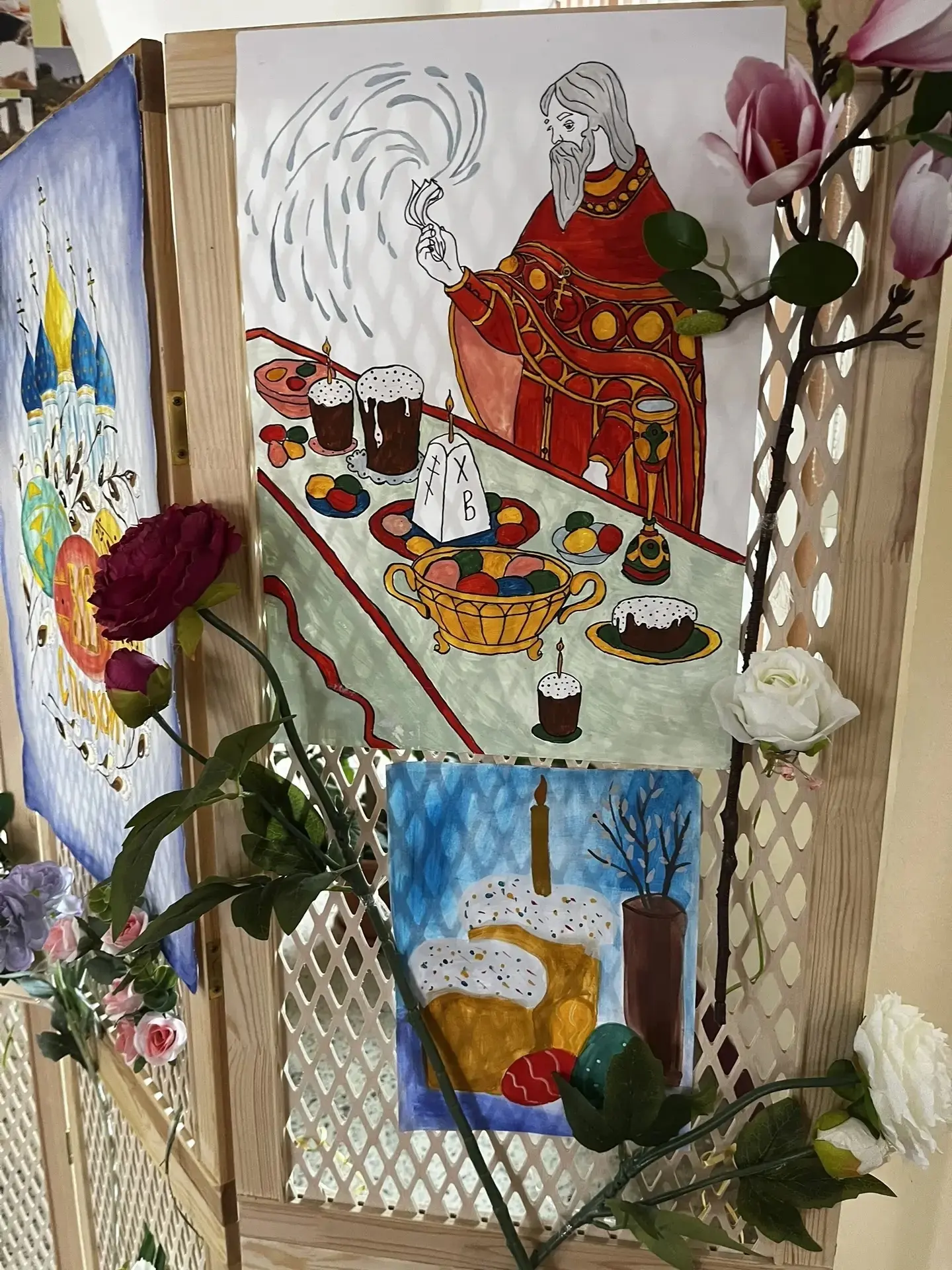 Ребята не только мастерили пасхальные сувениры, но и изображали Пасху на бумаге: яркие куличи, вербы, купола храмов и радостные весенние сюжеты. Каждый рисунок получился по-своему трогательным и искренним. 🖍️🐣