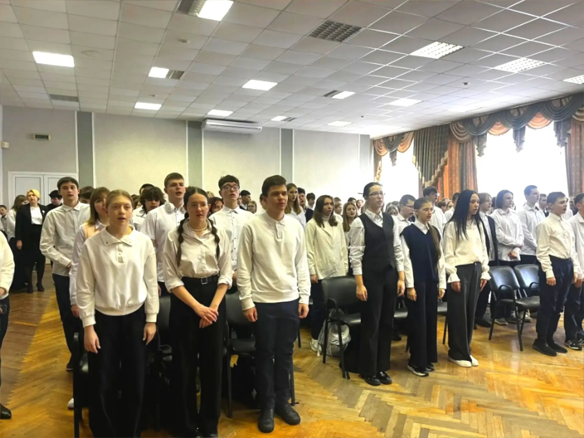 Атмосфера в зале была особенной: торжественно, душевно и по-настоящему празднично. Со сцены звучали знакомые мелодии, стихи о мужестве и песни, которые трогают до слез. Ребята не просто стали зрителями — они прочувствовали всю глубину уважения к тем, кто защищал и защищает нашу Родину.