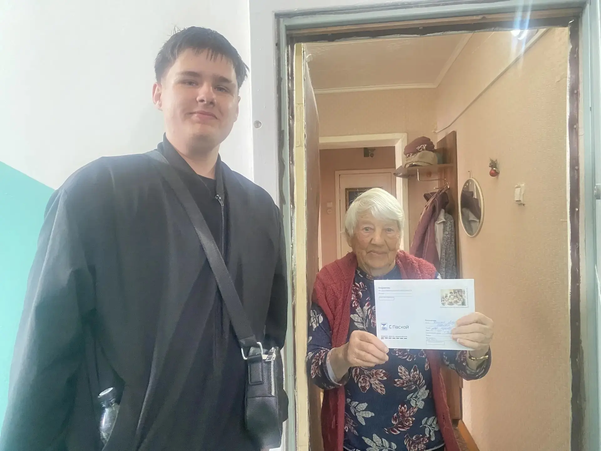 Активисты Совета старшеклассников и Движения Первых организовали трогательную акцию: они поздравили жителей с наступающим праздником и вручили им открытки.