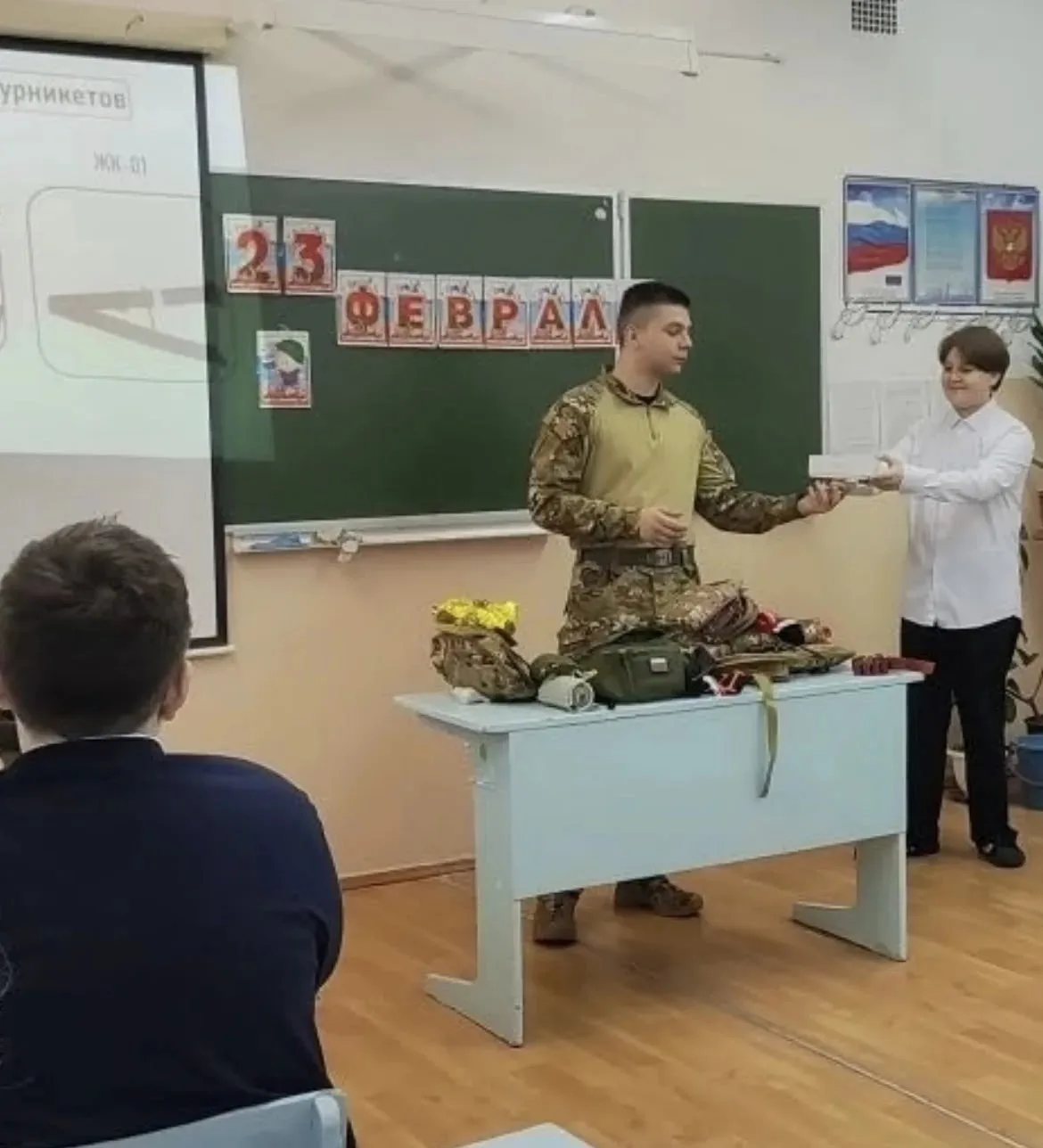 Конечно, ребята забросали гостя вопросами. Им было интересно всё! Но больше всего школьников волновало не то, что показывают в кино, а простые человеческие будни в экстремальных условиях боёв, а ещё — чем живут герои, когда остаются вне поля боя, какие у них увлечения и мысли.