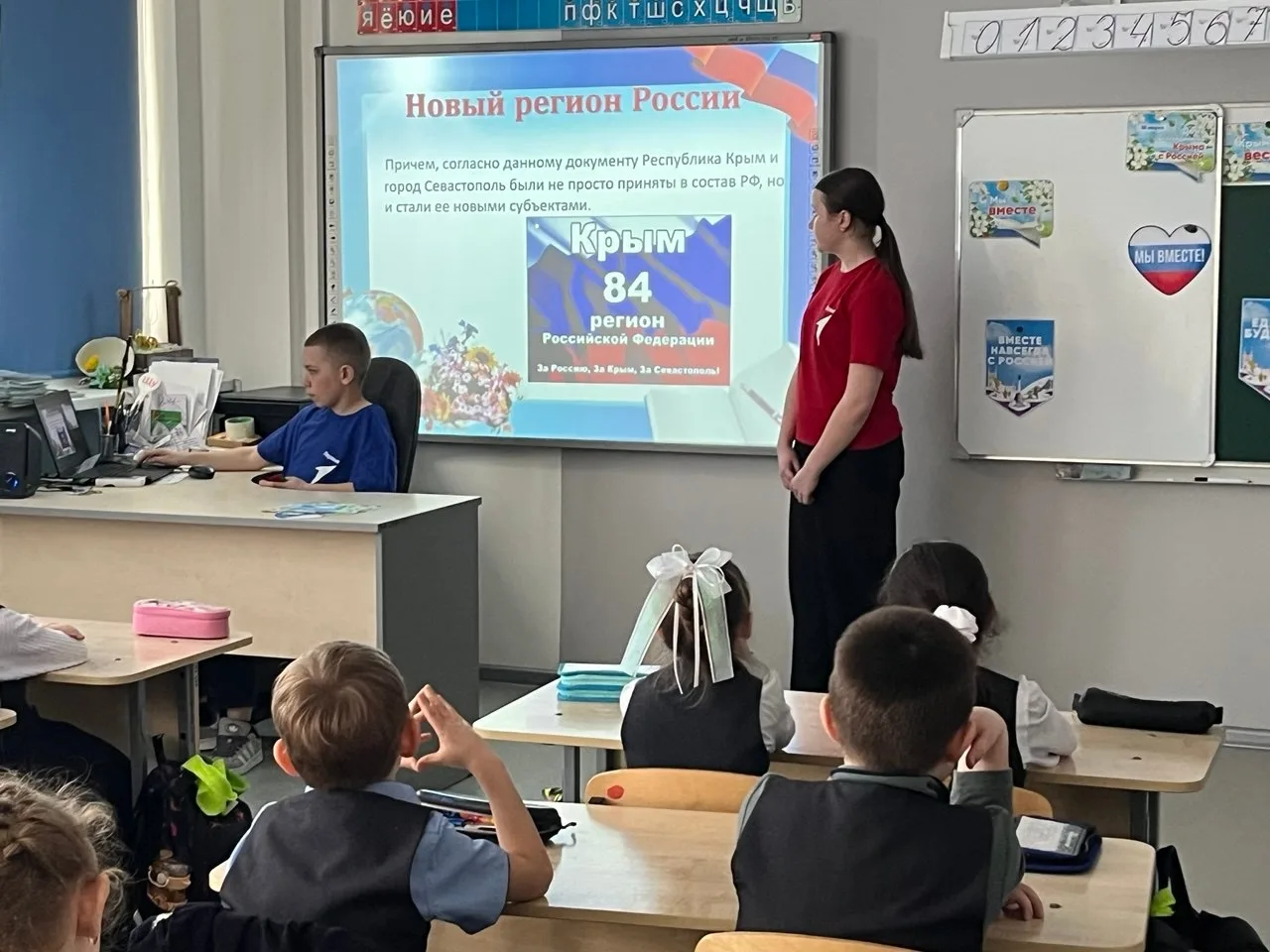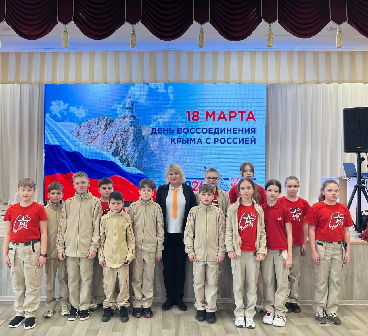 🇷🇺🇷🇺🇷🇺Активисты ПО «Движения Первых» нашей школы под руководством Карбушевой С.Г., советника директора по воспитанию, педагогом-организатором (куратором ПО «Движения Первых») приняли участие во Всероссийской акции «Движения Первых» «Одна страна – одна история», посвященной Дню воссоединения Крыма с Россией.